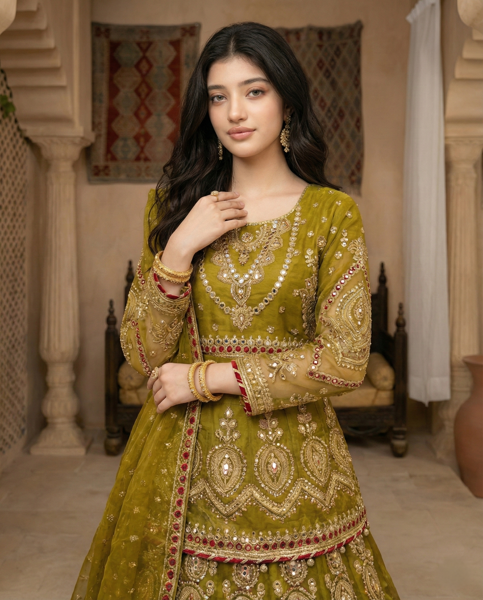 Discover the perfect look. Its flowy frock-style silhouette paired with delicate mirror accents creates a graceful festive charm. Designed for elegance and comfort, this organza ensemble makes you feel effortlessly dressed for weddings and formal occasions. Upgrade your look today with this timeless outfit.