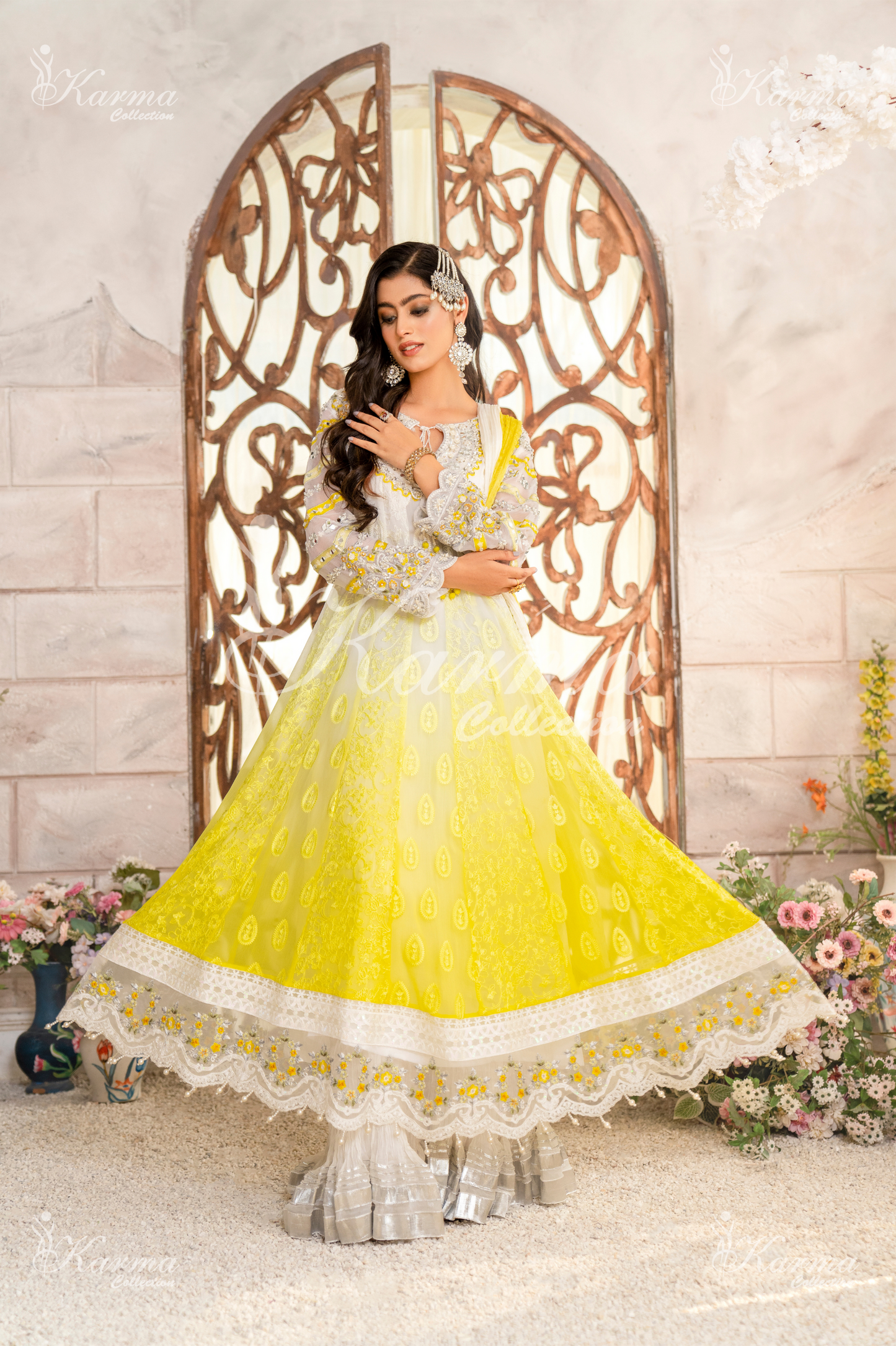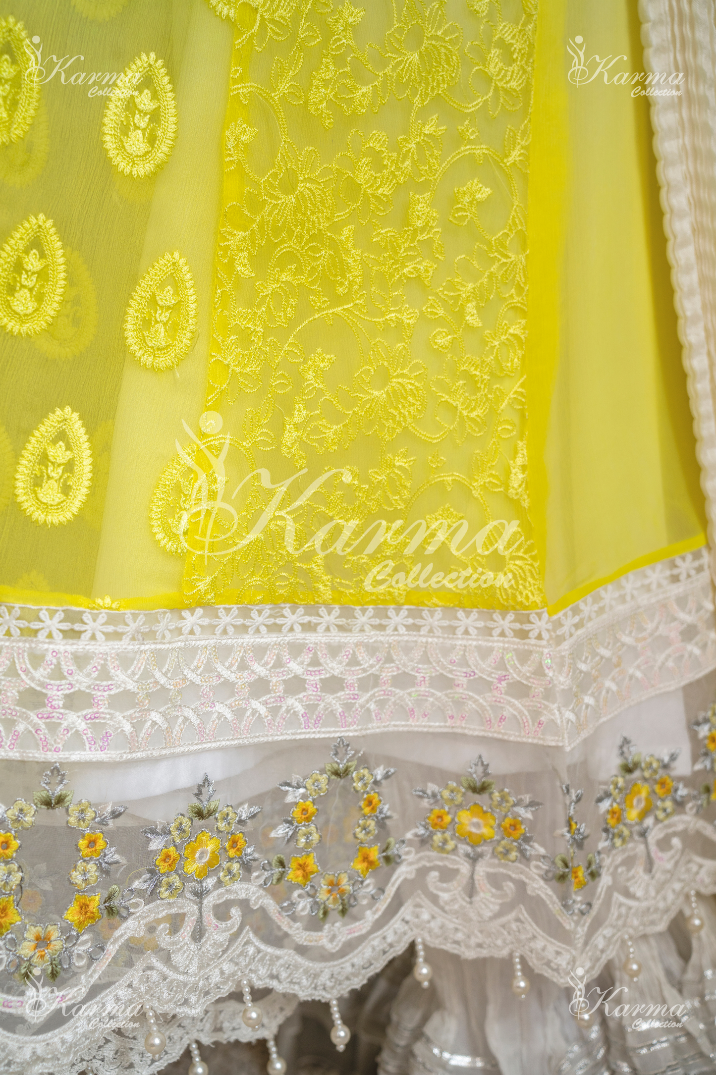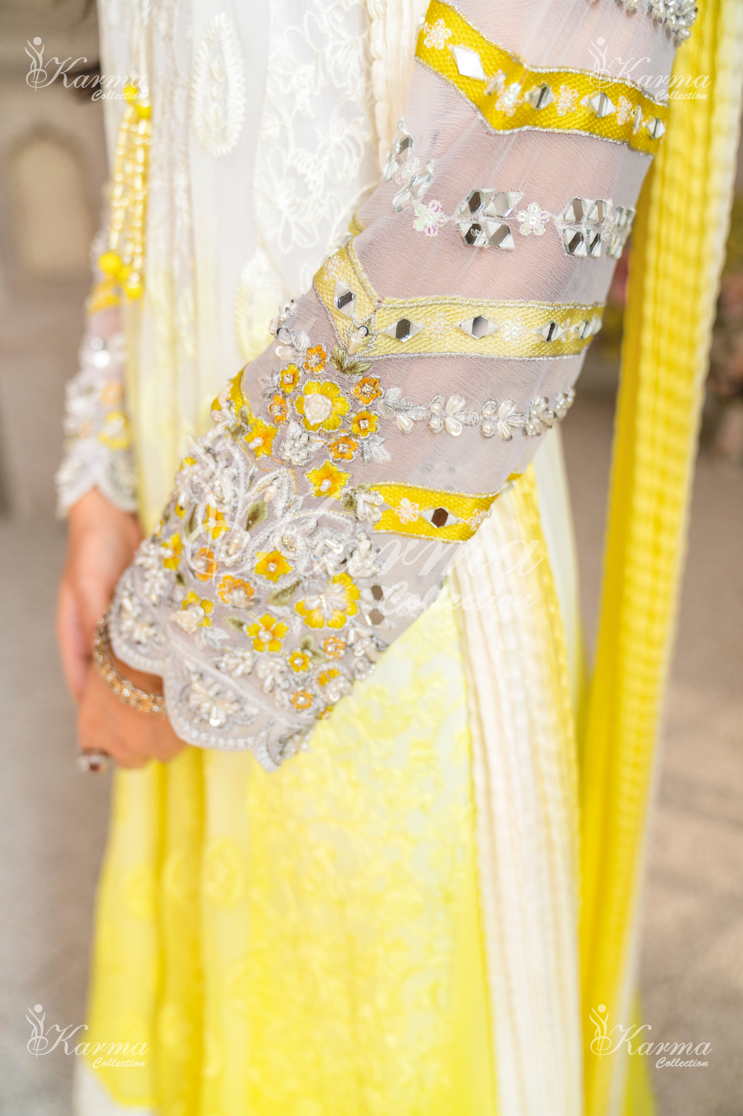Experience luxury and grace with our Karma 420 Article Ready to Wear set. Made with Chiffon Double Colors, the Frock features exquisite Ada Work on Gela and Sleeves. The Sparkling Sequins Crush Sharara and Crush Dupatta add a touch of glamour to complete the look. Perfect for any special occasion.