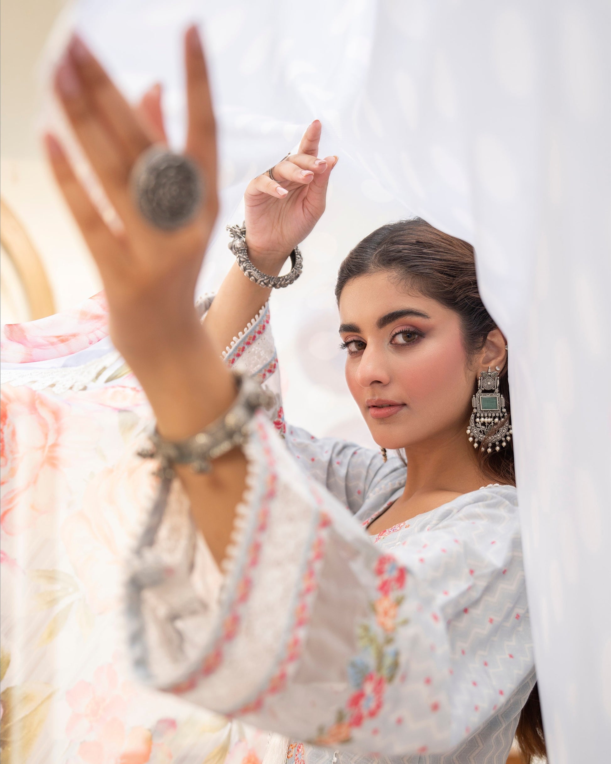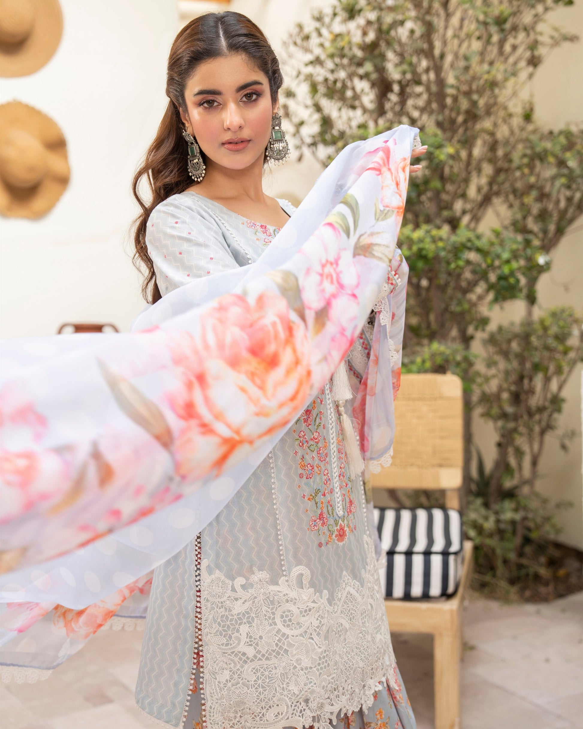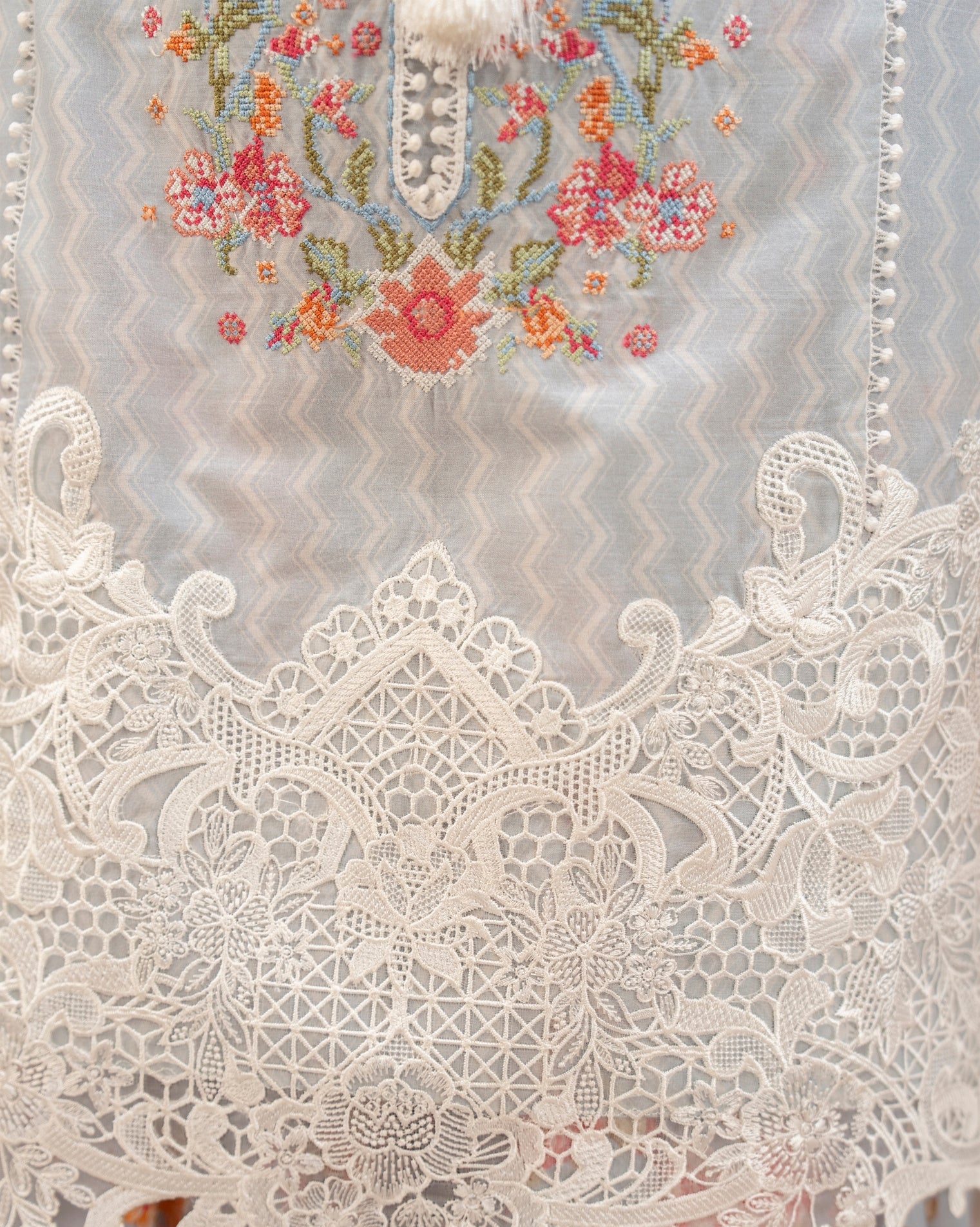 Dupatta: Crinkle Chiffon (Printed with All-Over Lace)