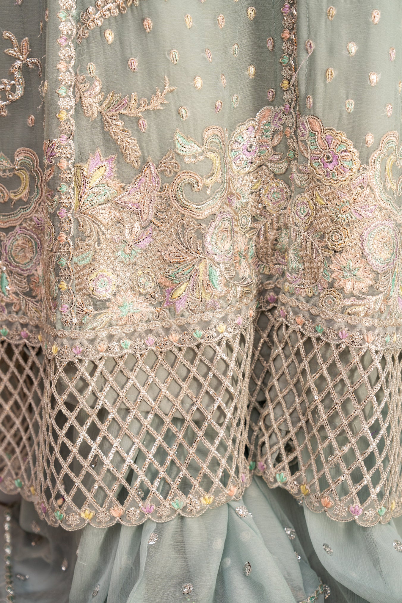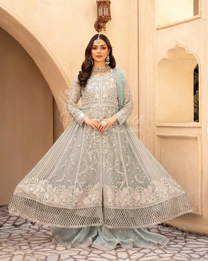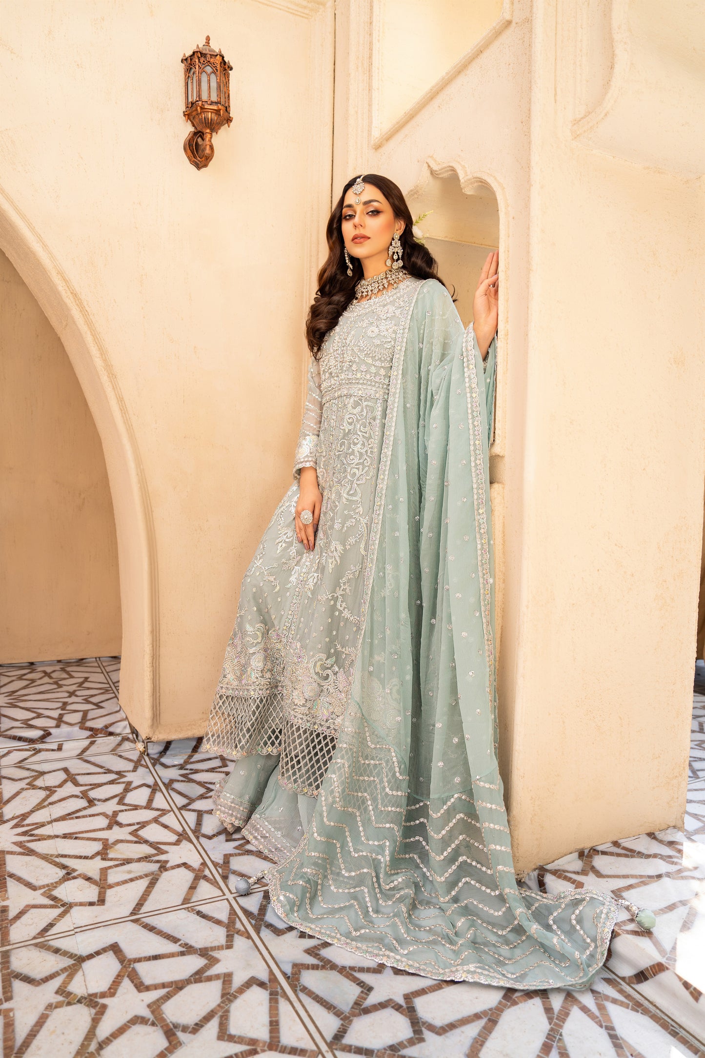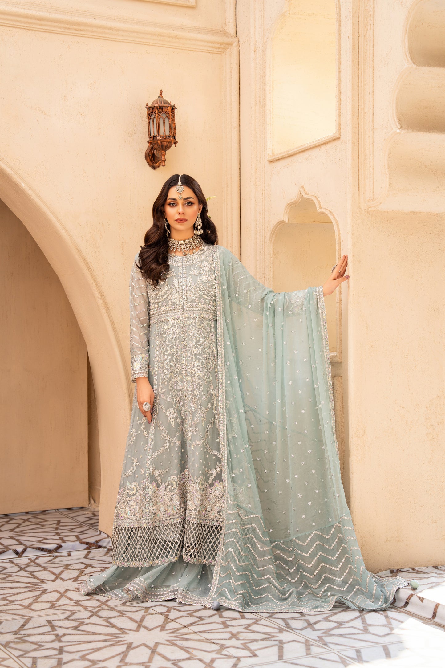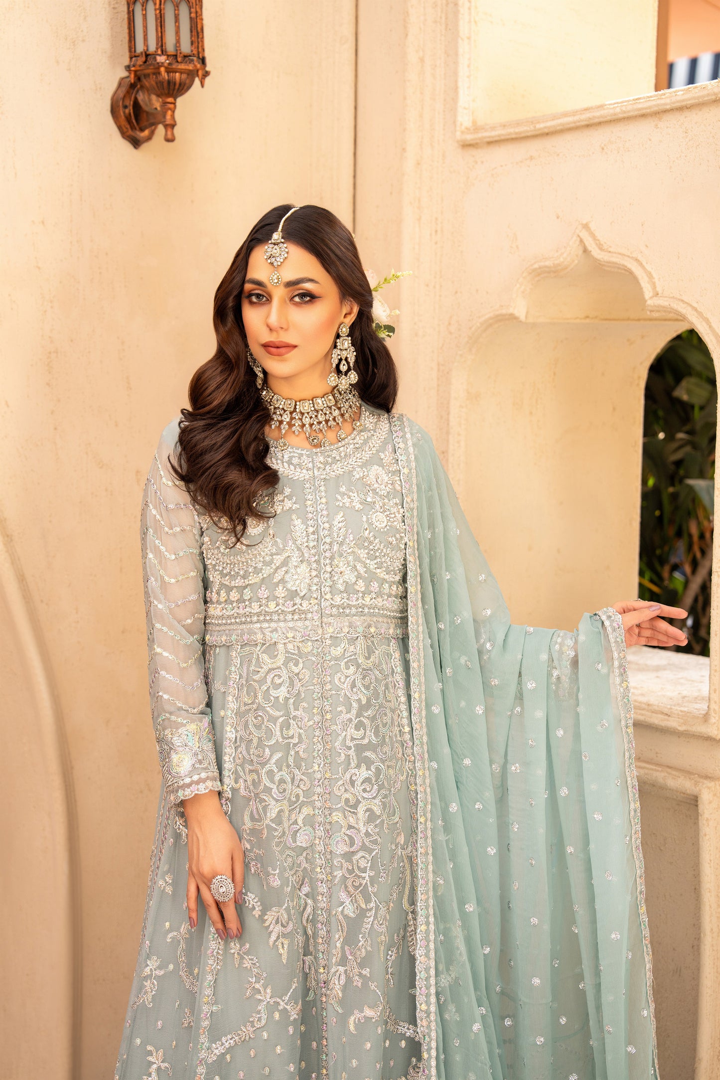 You'll be stepping into elegance with the Diyar-E-Dil 2024 collection. This 3PC Ready to Wear set includes a beautiful shirt, dupatta, and gharara, all designed to bring out the grace and beauty of your special occasion. The intricate embroidery and embellishments add a touch of luxury, making this a must-have for every wardrobe.