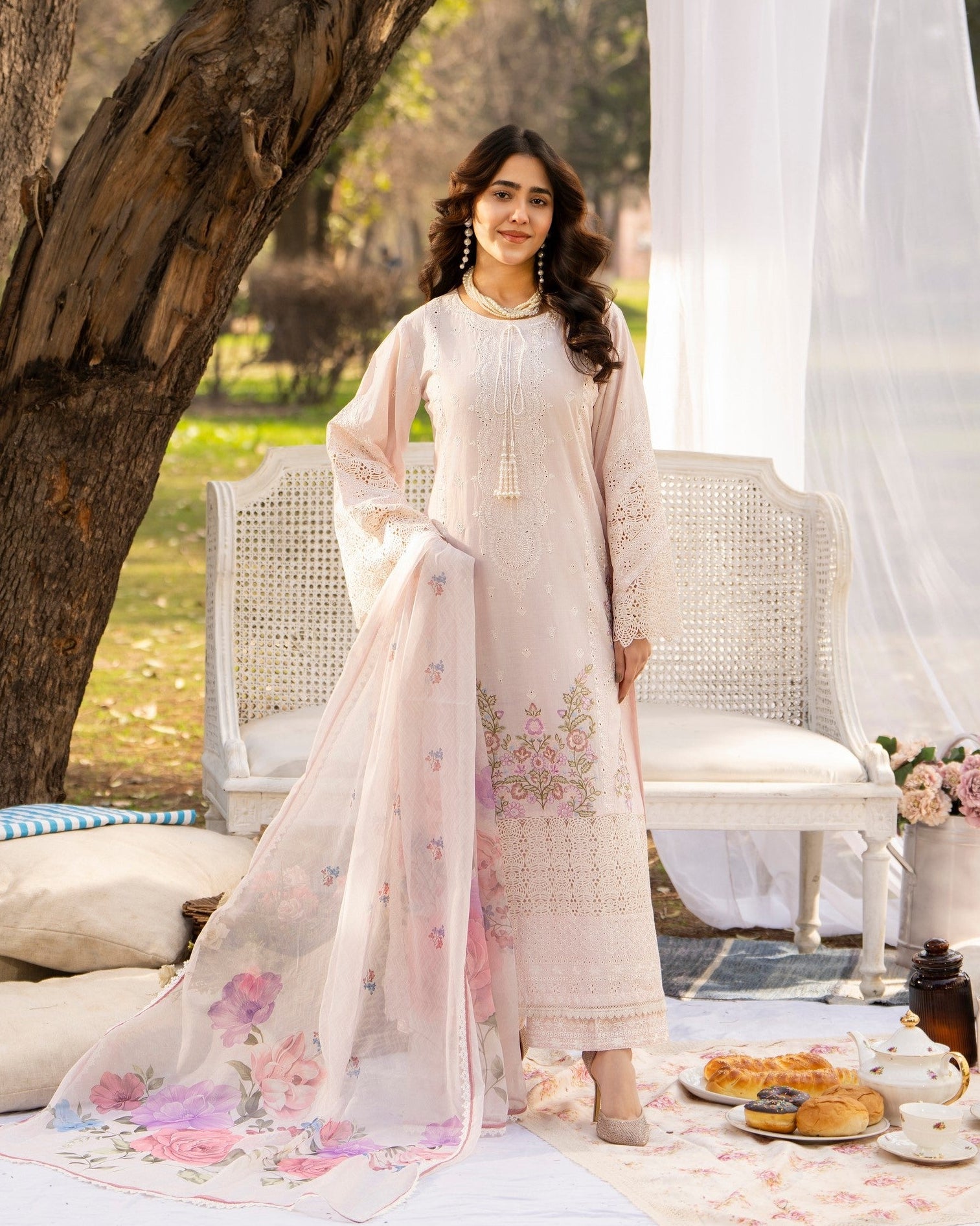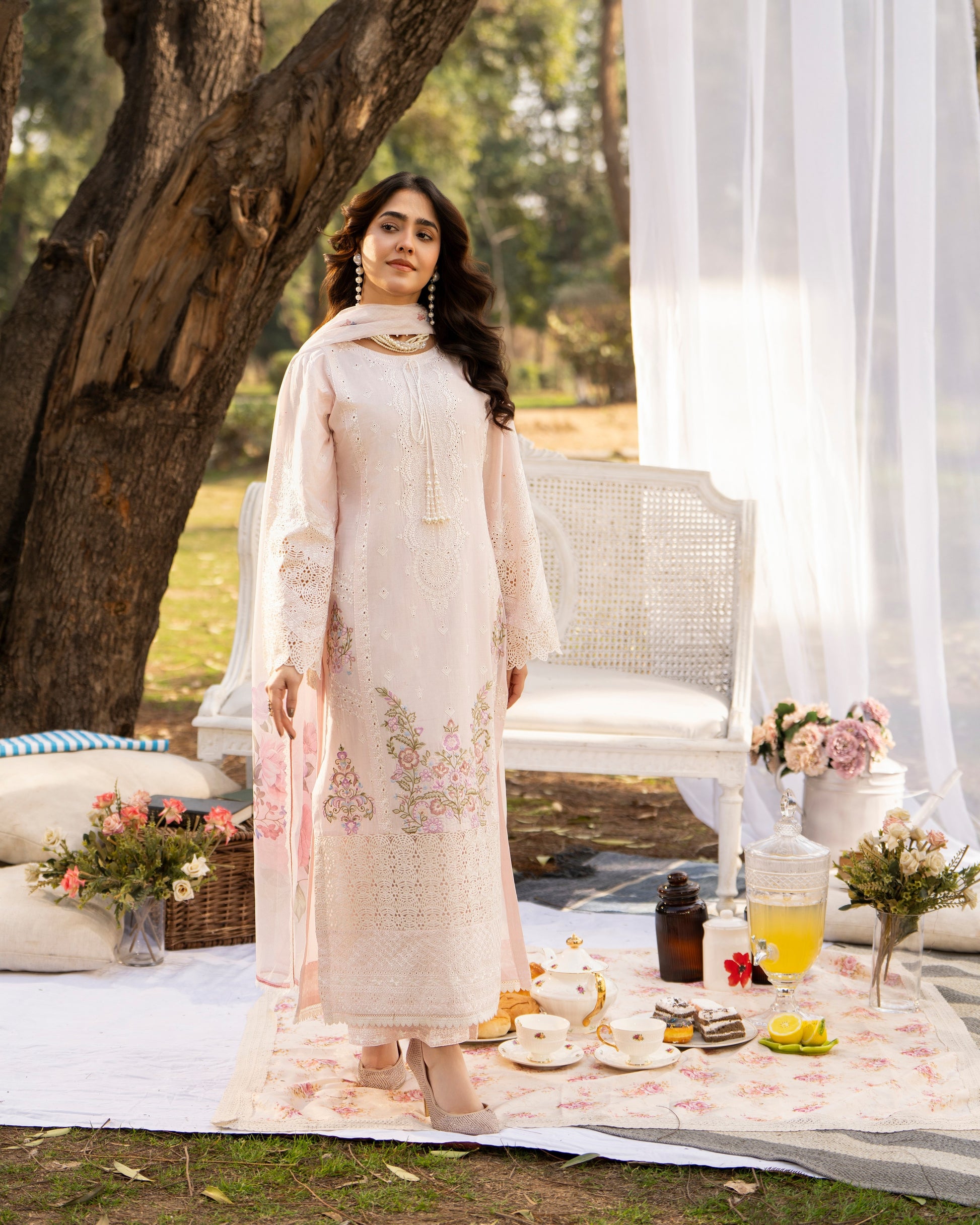 Dupatta: Printed lawn dupatta adorned with lace on all sides, adding softness and visual charm to the outfit.