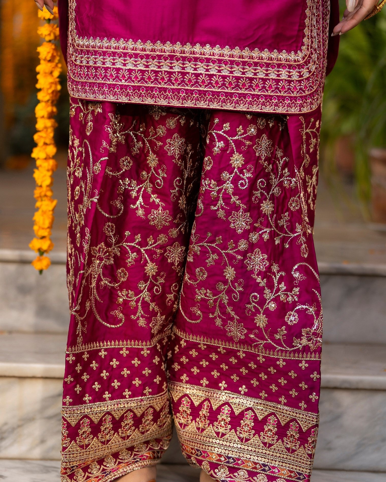Trouser: Fully embroidered silk shalwar.