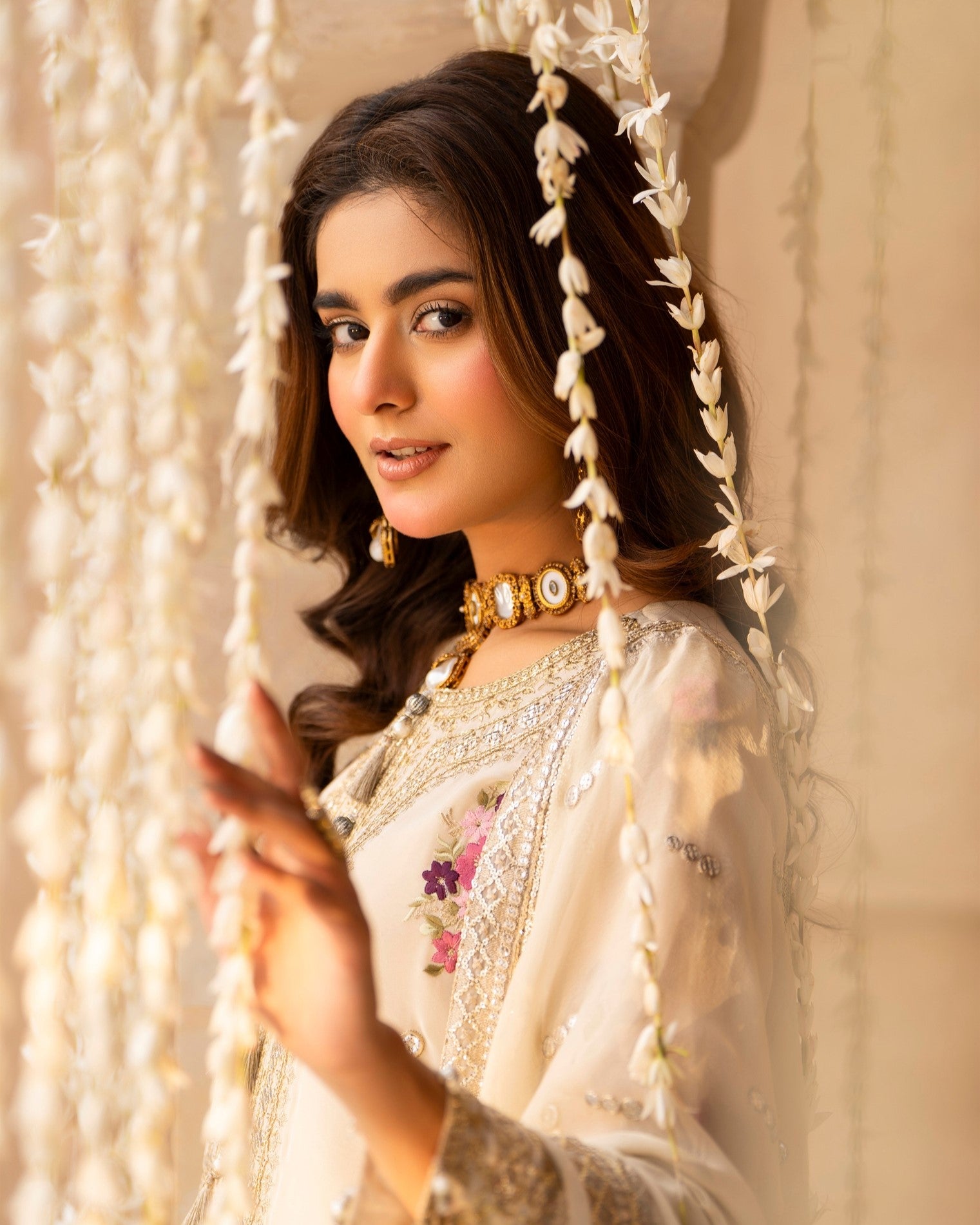 Discover the perfect look. Soft ivory tones enhanced with refined embroidery create an elegant and airy look for summer festivities.