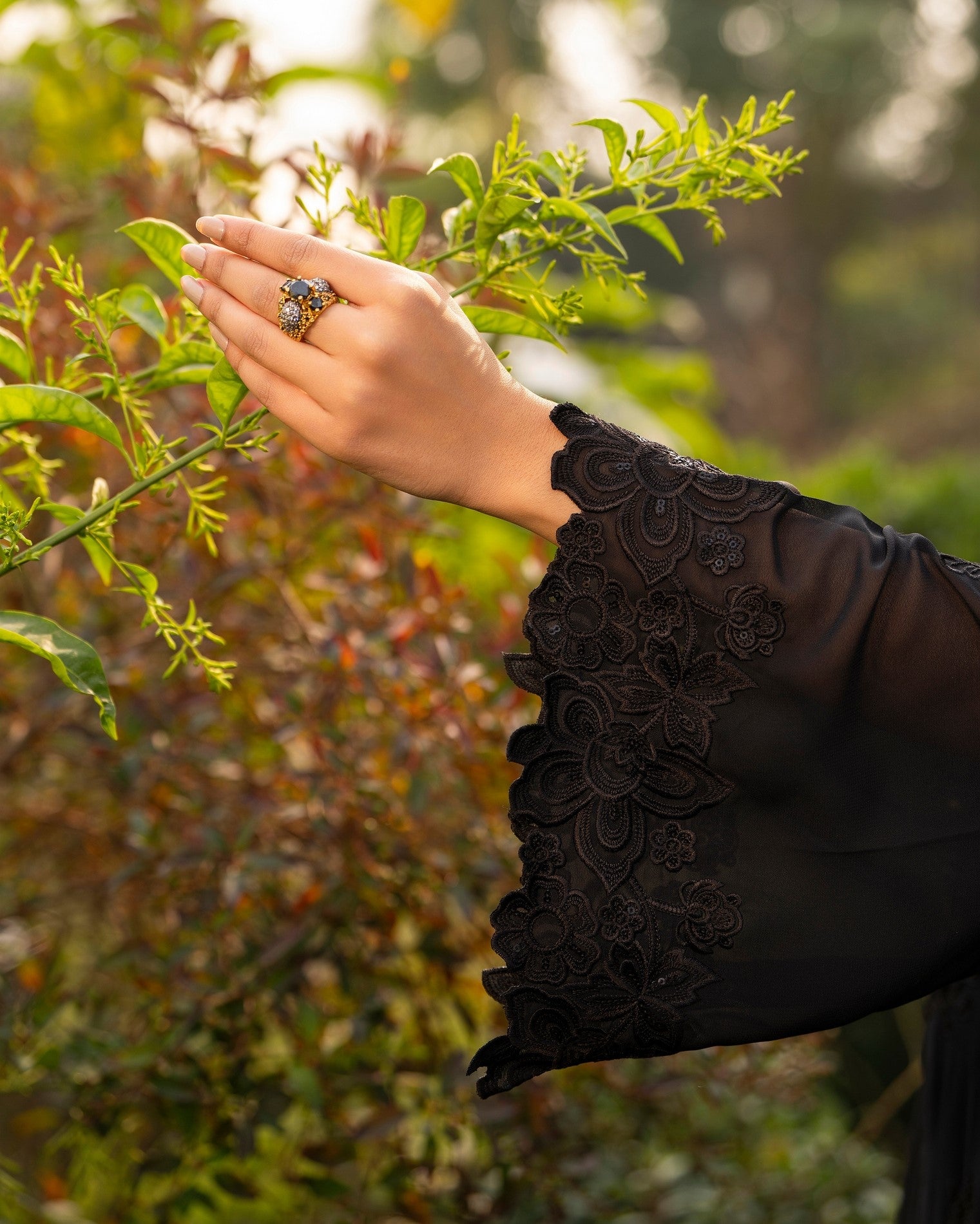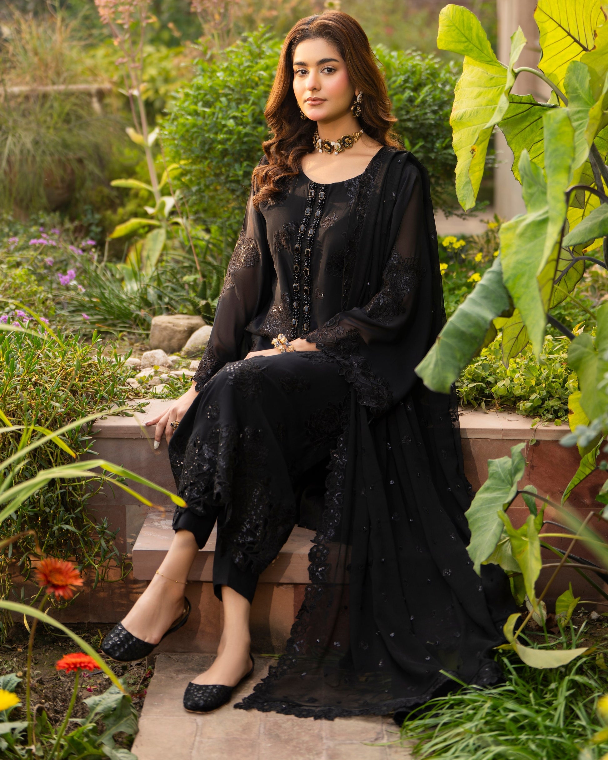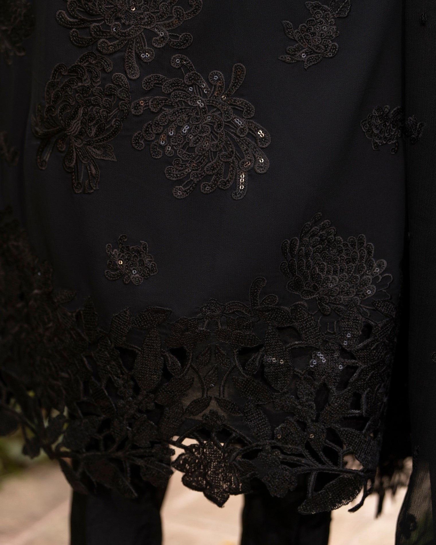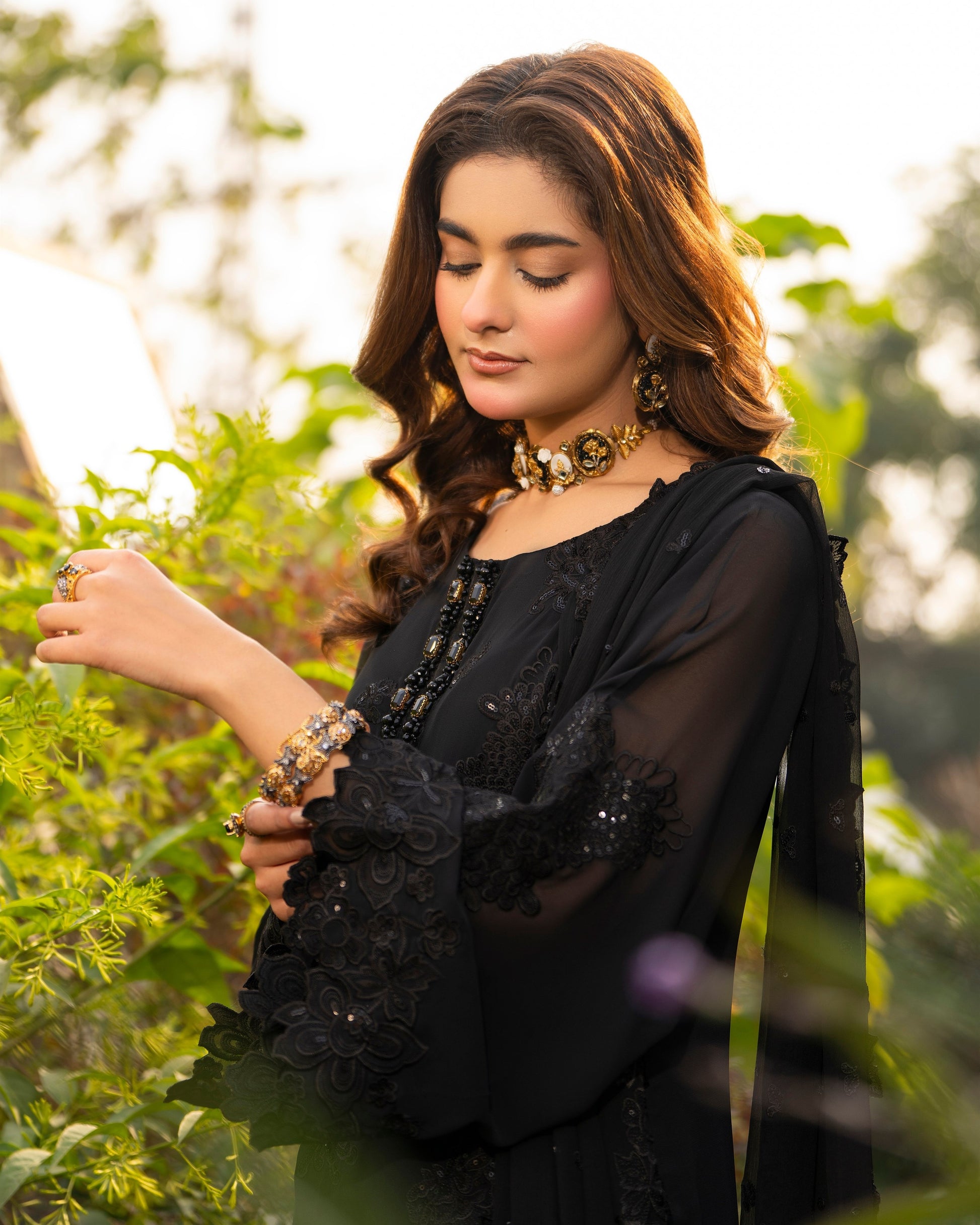 Discover the perfect look. Deep dark raven tones combined with fine adda work create a bold yet elegant ensemble ideal for evening wear and celebrations.