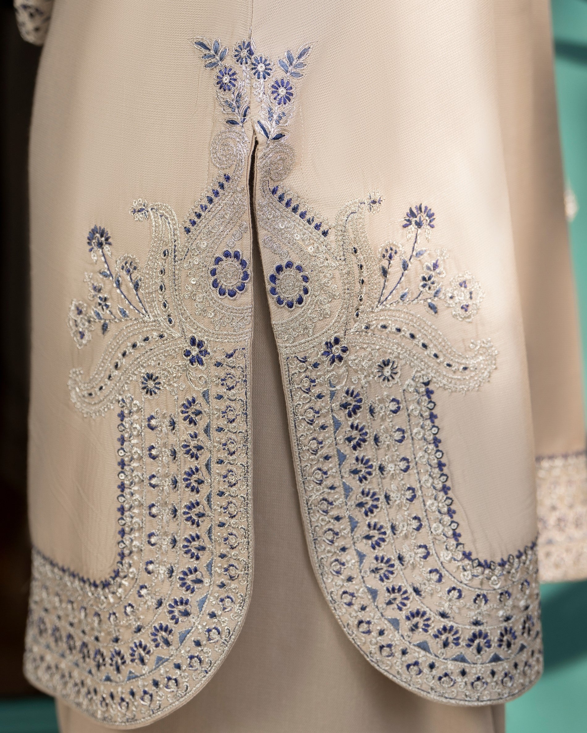 Shirt: Kotrai shirt with a round border design, embellished with multi-thread embroidery for a classic and stylish appearance.