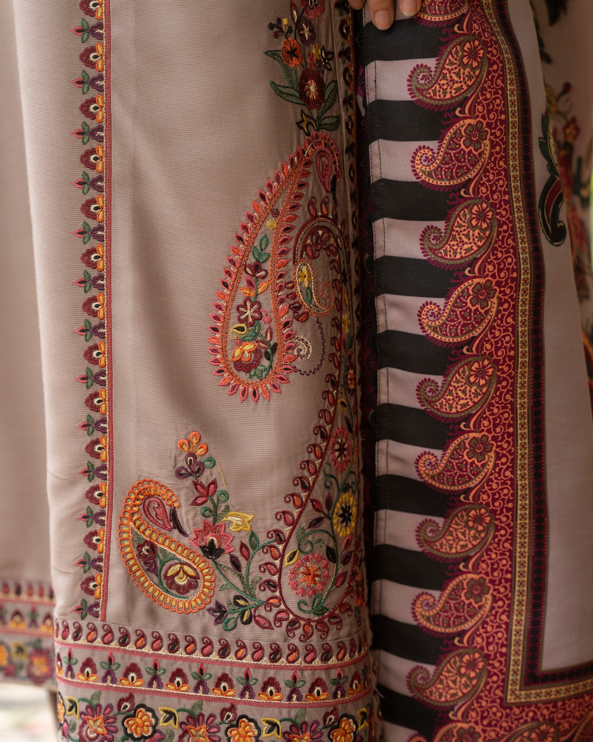 A soft and graceful look with a fresh touch — the flow of kotrai and the charm of delicate embroidery make it effortless yet elegant, perfect for everyday wear and dawat styling.