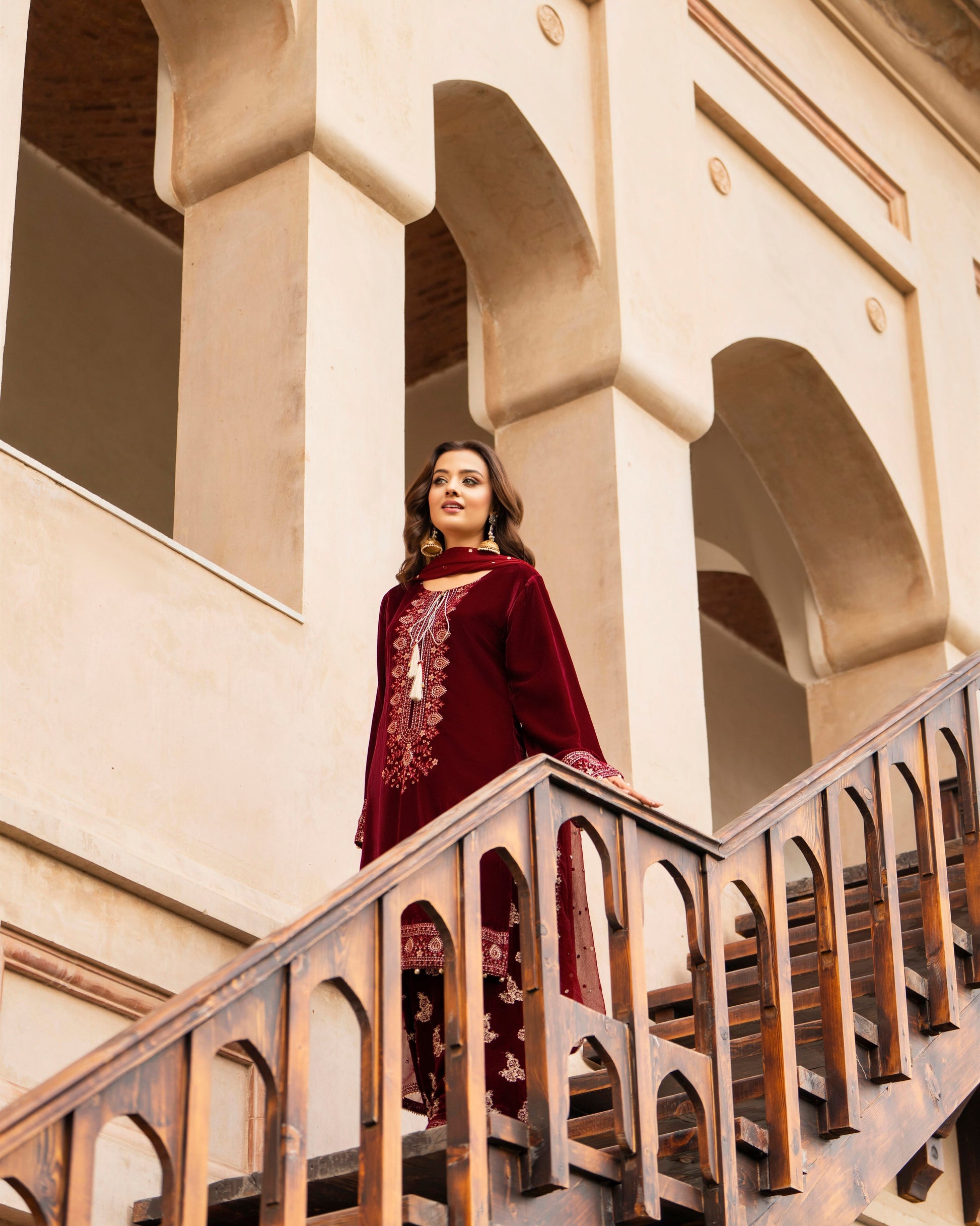 Farshi Shalwar: Matching velvet farshi shalwar for a regal, flowing silhouette