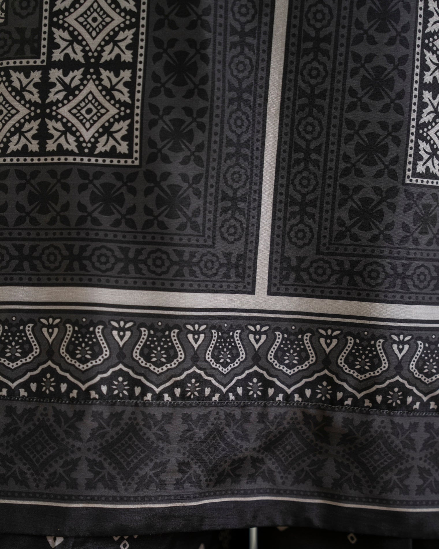 Shirt: Printed raw silk Co-Ord shirt with fine detailing and a graceful finish