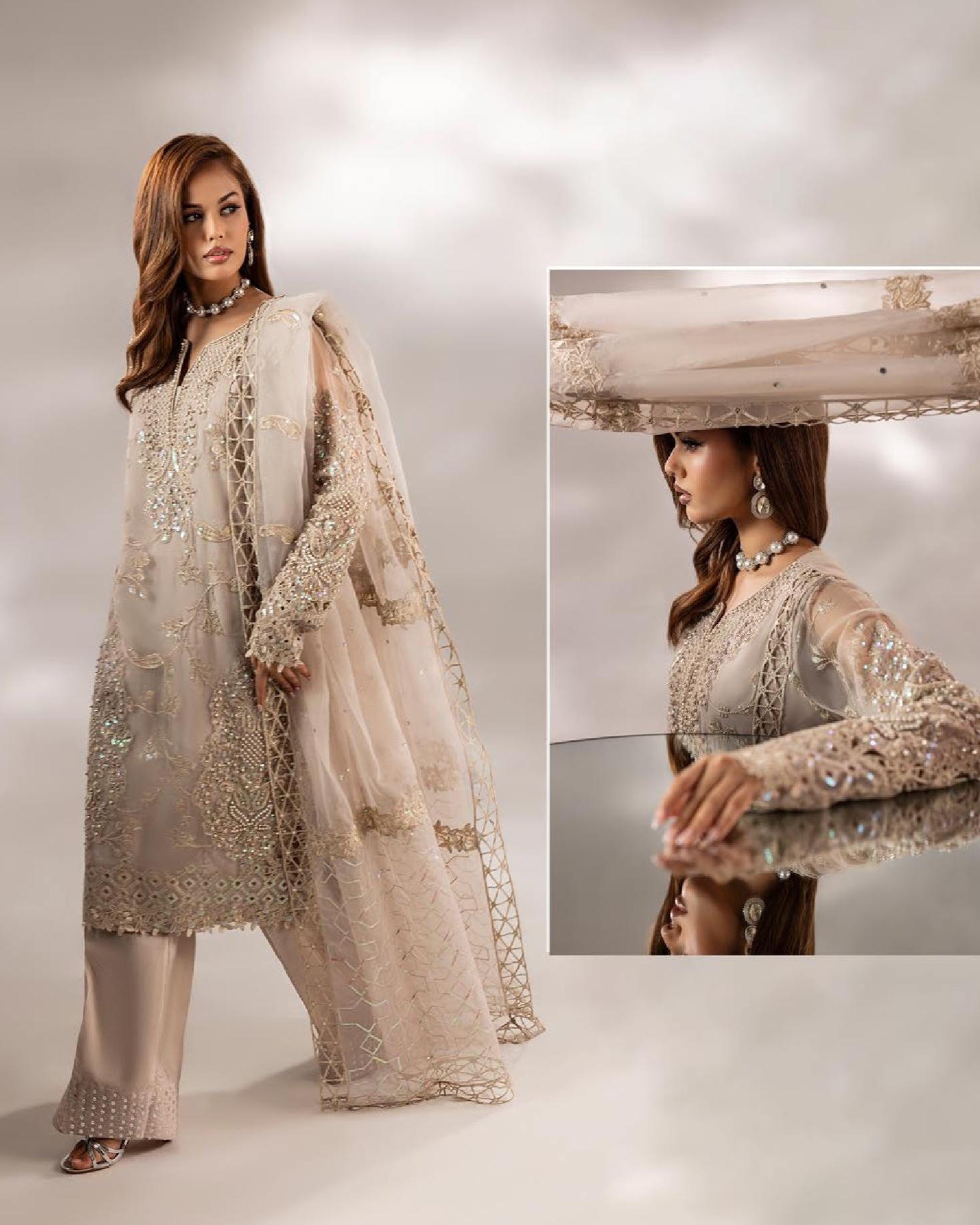 Dupatta: Organza dupatta adding a soft and graceful finishing touch
