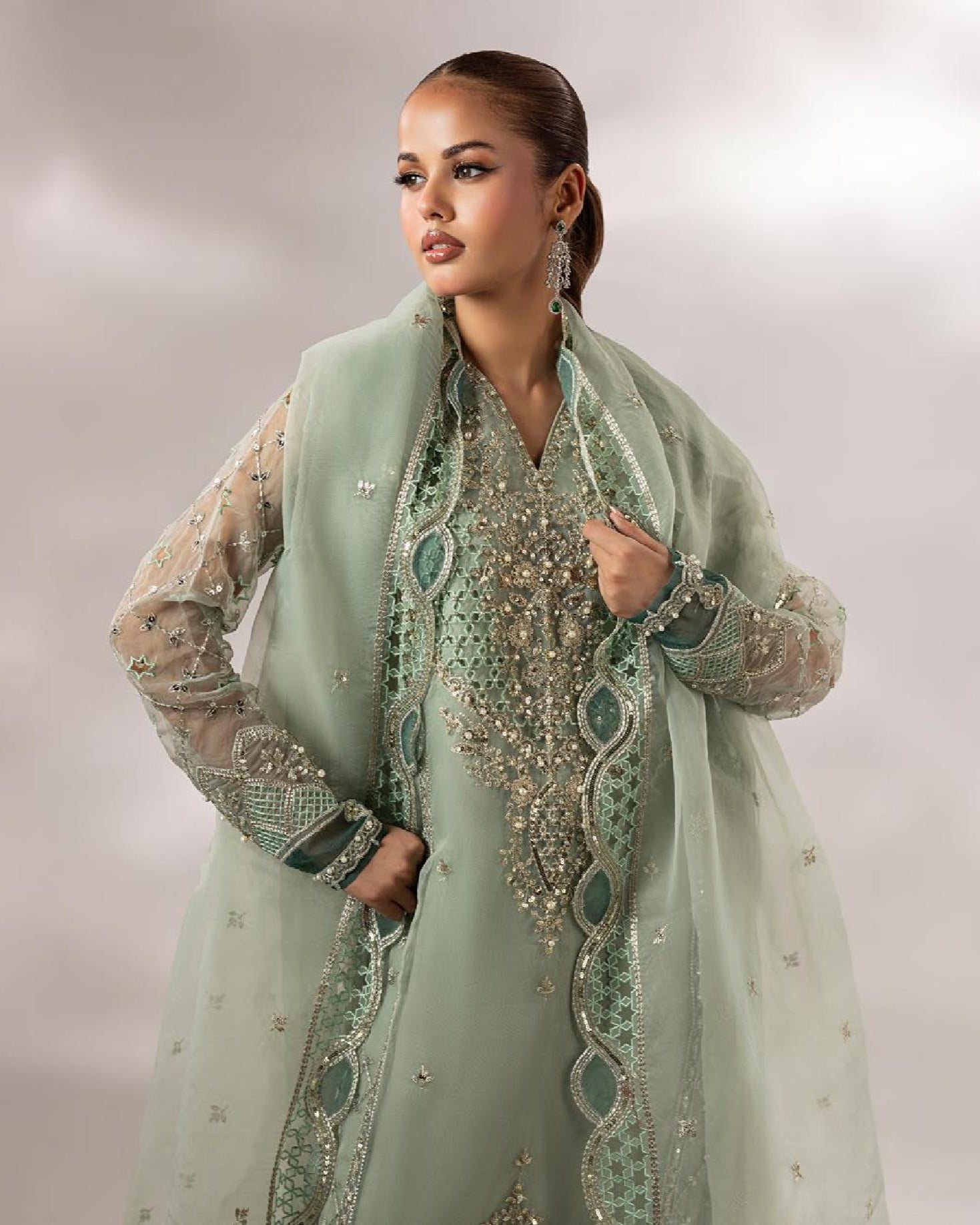 Dupatta: Organza dupatta adding a soft and graceful finishing touch