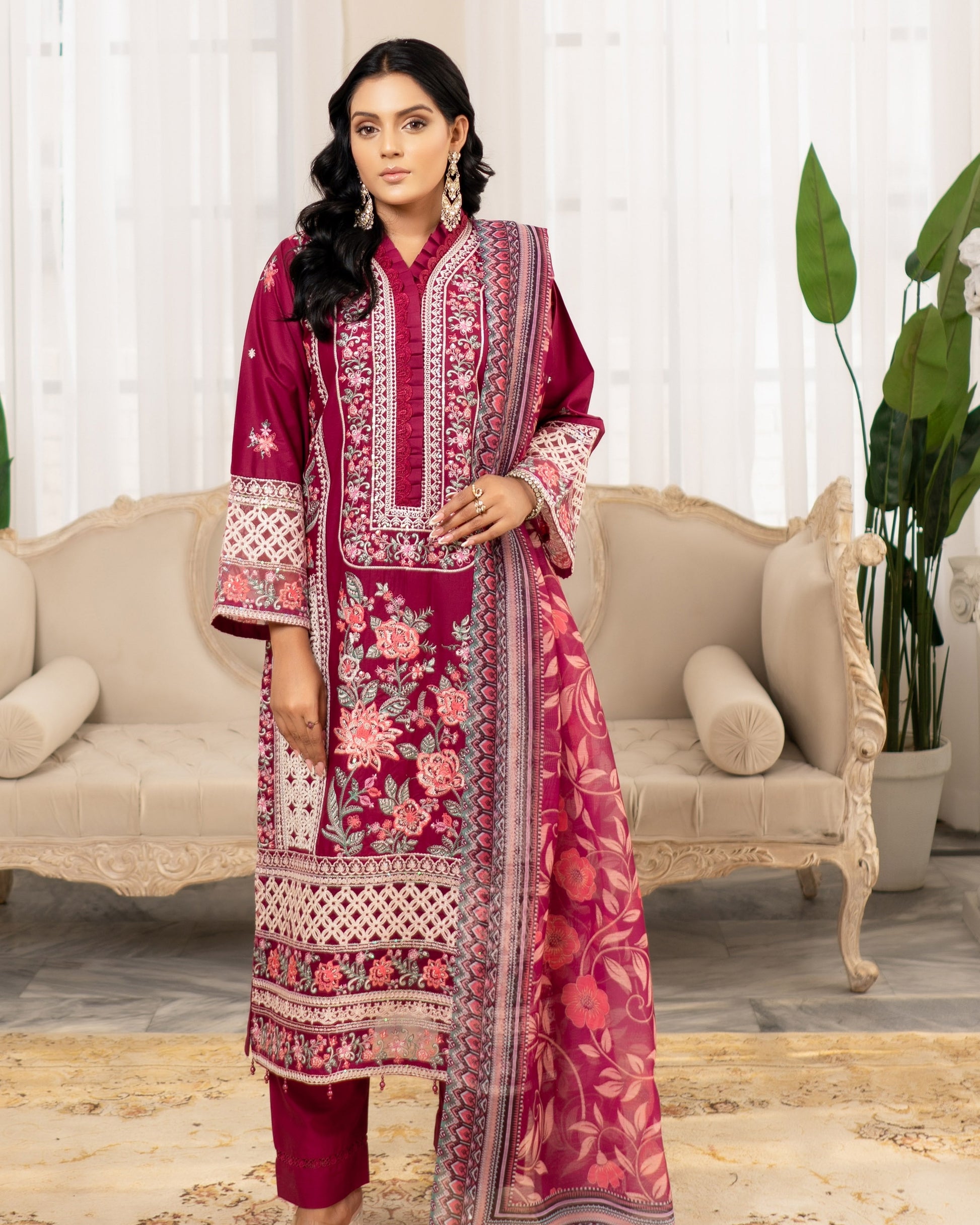 Step into elegance with this luxury 3PC cotton ensemble from Munira Designer, crafted for those who appreciate fine craftsmanship. The front-heavy shirt showcases intricate embroidery, heavy patchwork, sequins, and elegant chikankari detailing—each element designed to stand out. Paired with a printed Khaddi dupatta and matching cotton trouser, this outfit brings both style and substance. L and XL sizes come with an additional shalwar for added value, making it a versatile choice for winter dawat or classy daywear. This is one of those rare designs that don’t come around often—don’t miss your chance.
