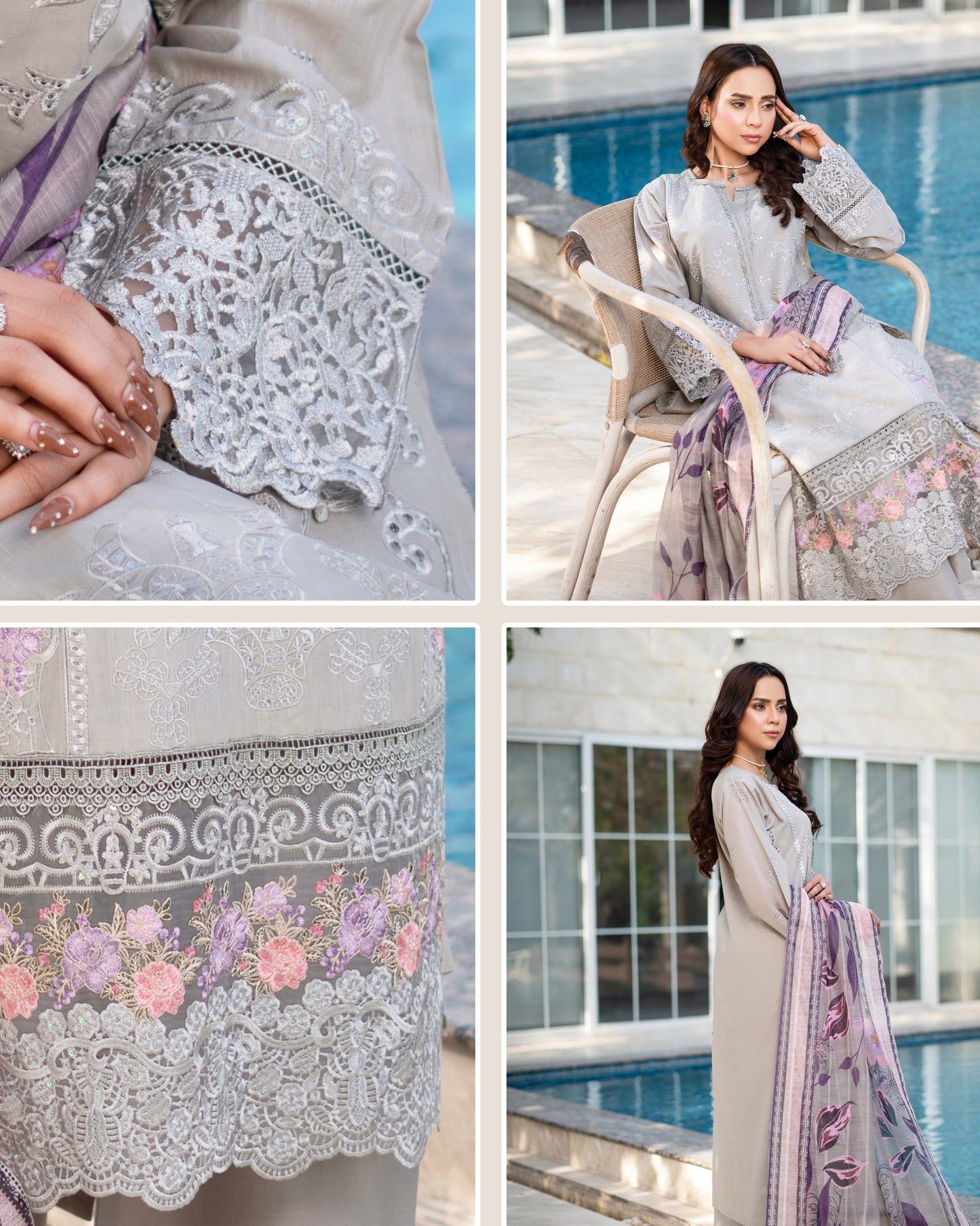 Introducing the Munira 7 Scrolling Cotton collection – a 3-piece luxury cotton outfit adorned with intricate embroidery and detailed patchwork that speaks of timeless elegance. Paired with a stunning floral diamond-patterned dupatta, this ensemble is designed to bring out the best in your festive and formal looks. The breathable cotton fabric ensures comfort, while the luxurious detailing elevates your overall style effortlessly.