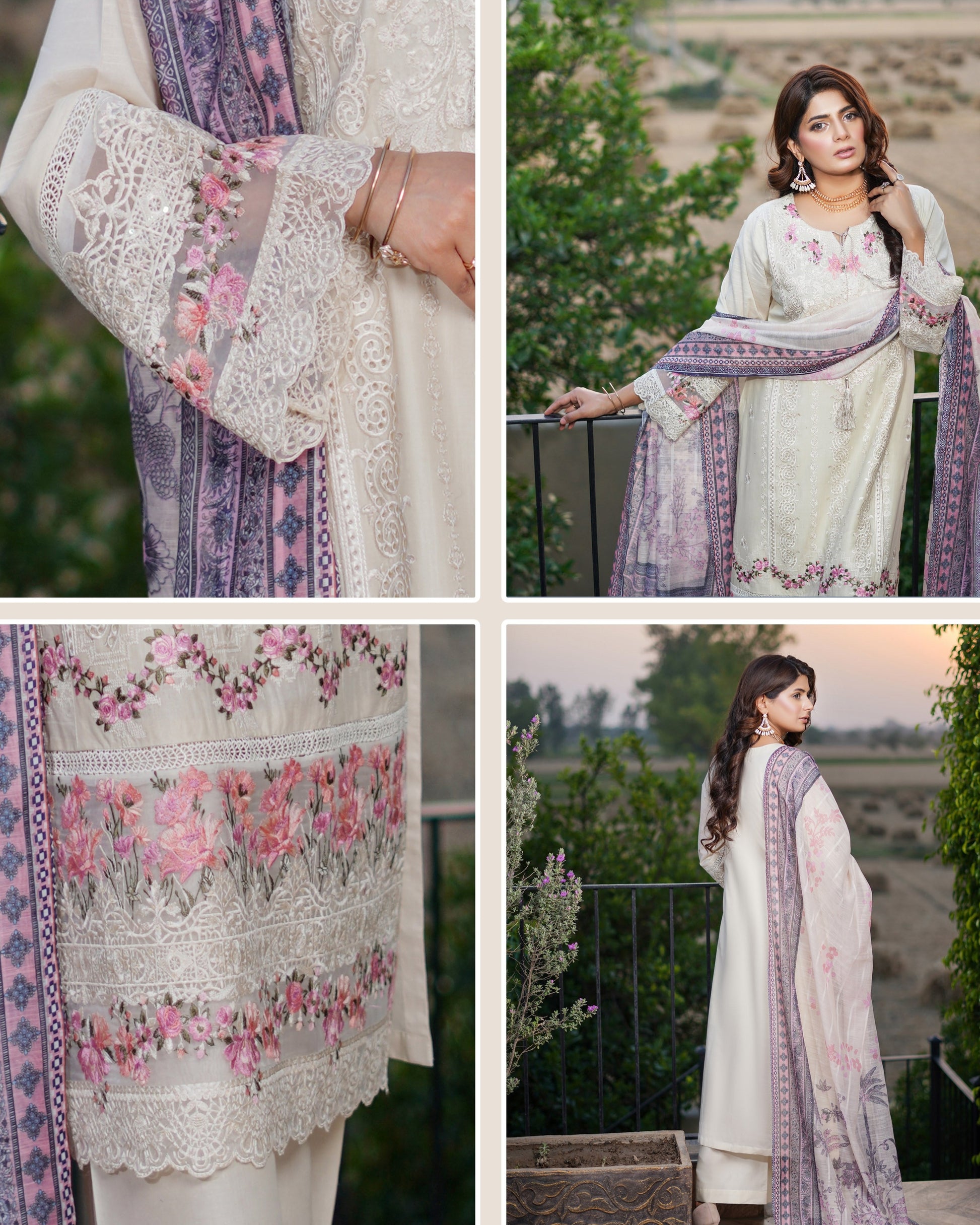 Introducing the Munira 7 Scrolling Cotton collection – a 3-piece luxury cotton outfit adorned with intricate embroidery and detailed patchwork that speaks of timeless elegance. Paired with a stunning floral diamond-patterned dupatta, this ensemble is designed to bring out the best in your festive and formal looks. The breathable cotton fabric ensures comfort, while the luxurious detailing elevates your overall style effortlessly.