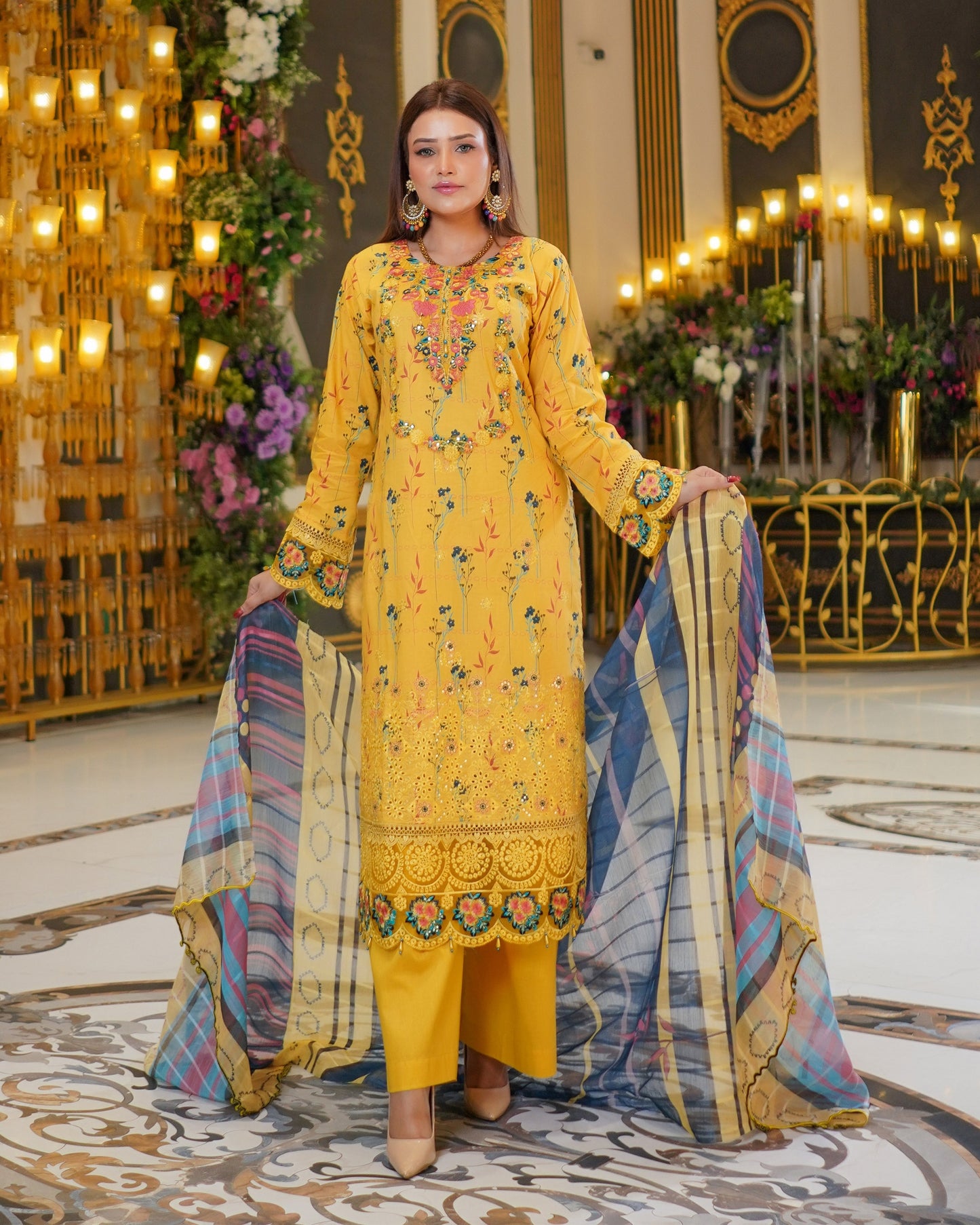 Size chart of Munira Dilkash Lawn 03 Mustard