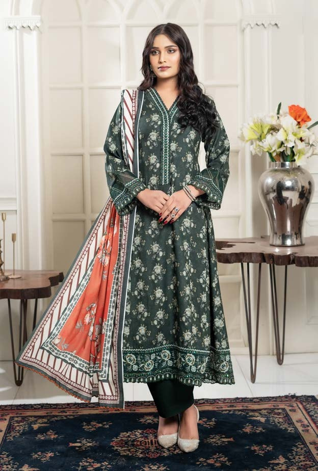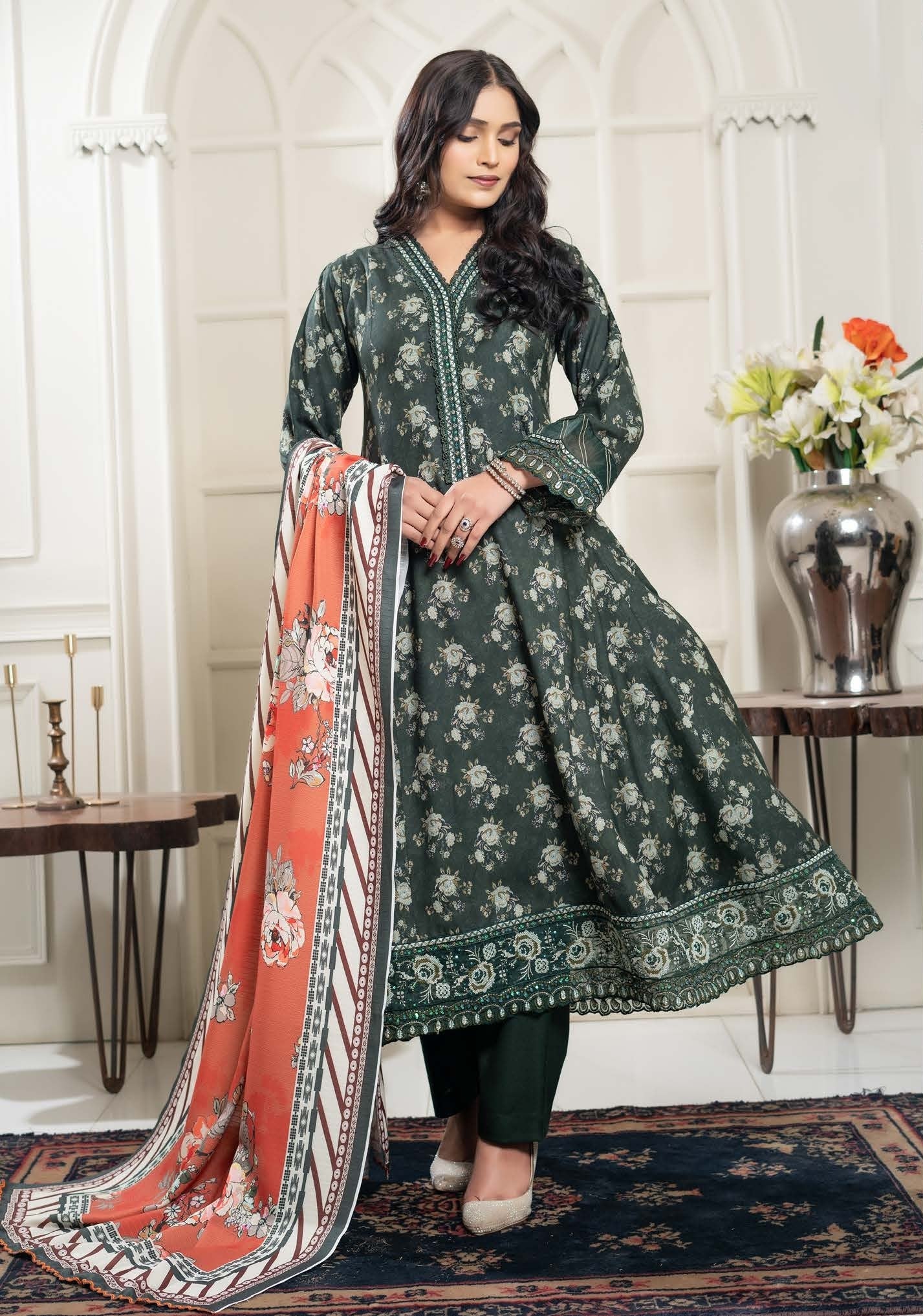 Stay cozy and chic this season with this 3-piece ready-to-wear set. The frock is crafted from premium Dhanak fabric for warmth and style, paired with a soft printed wool shawl that adds a pop of color to your look. Complete the outfit with comfortable Dhanak trousers, perfect for any winter gathering.