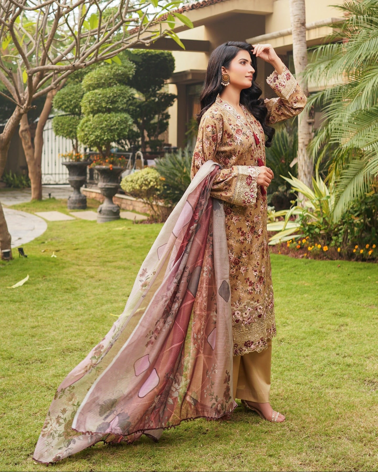 Step into fresh sophistication with this delicately detailed lawn ensemble. Thoughtful craftsmanship and soft prints create a look that feels graceful, polished, and effortlessly refined. Designed for elegant everyday wear with a premium touch.