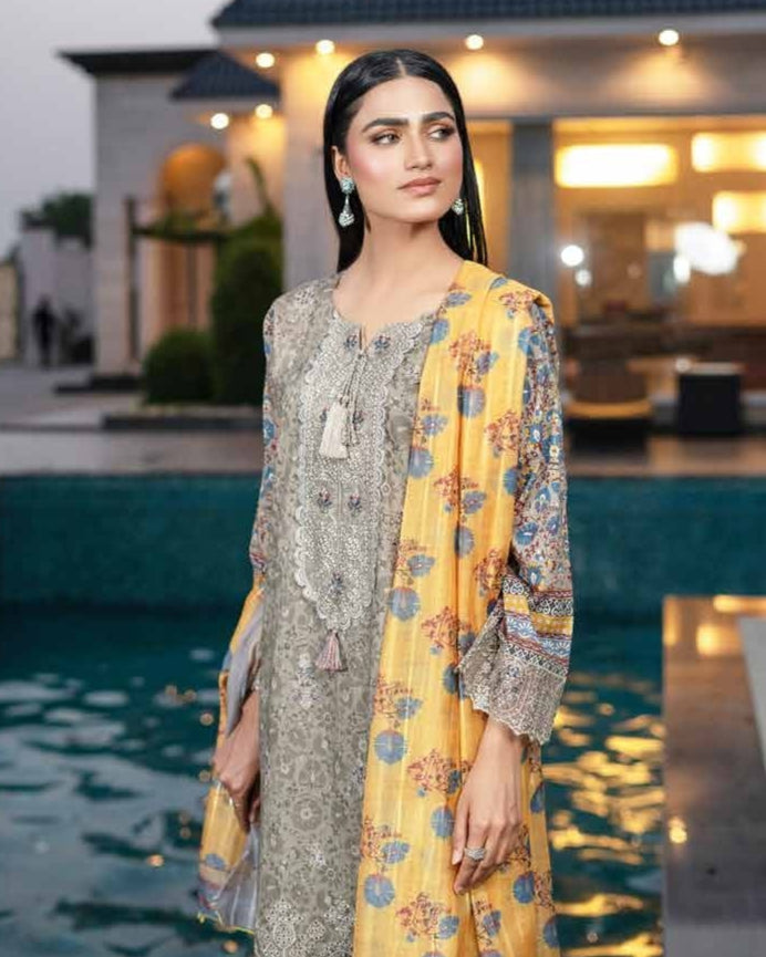 Discover the perfect look. Its delicate chikankari work and charming tassel accents bring effortless grace to your wardrobe. Designed for comfort and style, this 3PC suit blends elegance with everyday charm—perfect for dawat, Eid, or casual festive wear.