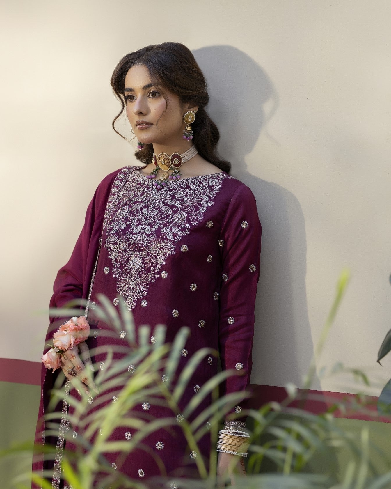 Dupatta: Matching raw silk dupatta completing the sophisticated ensemble
