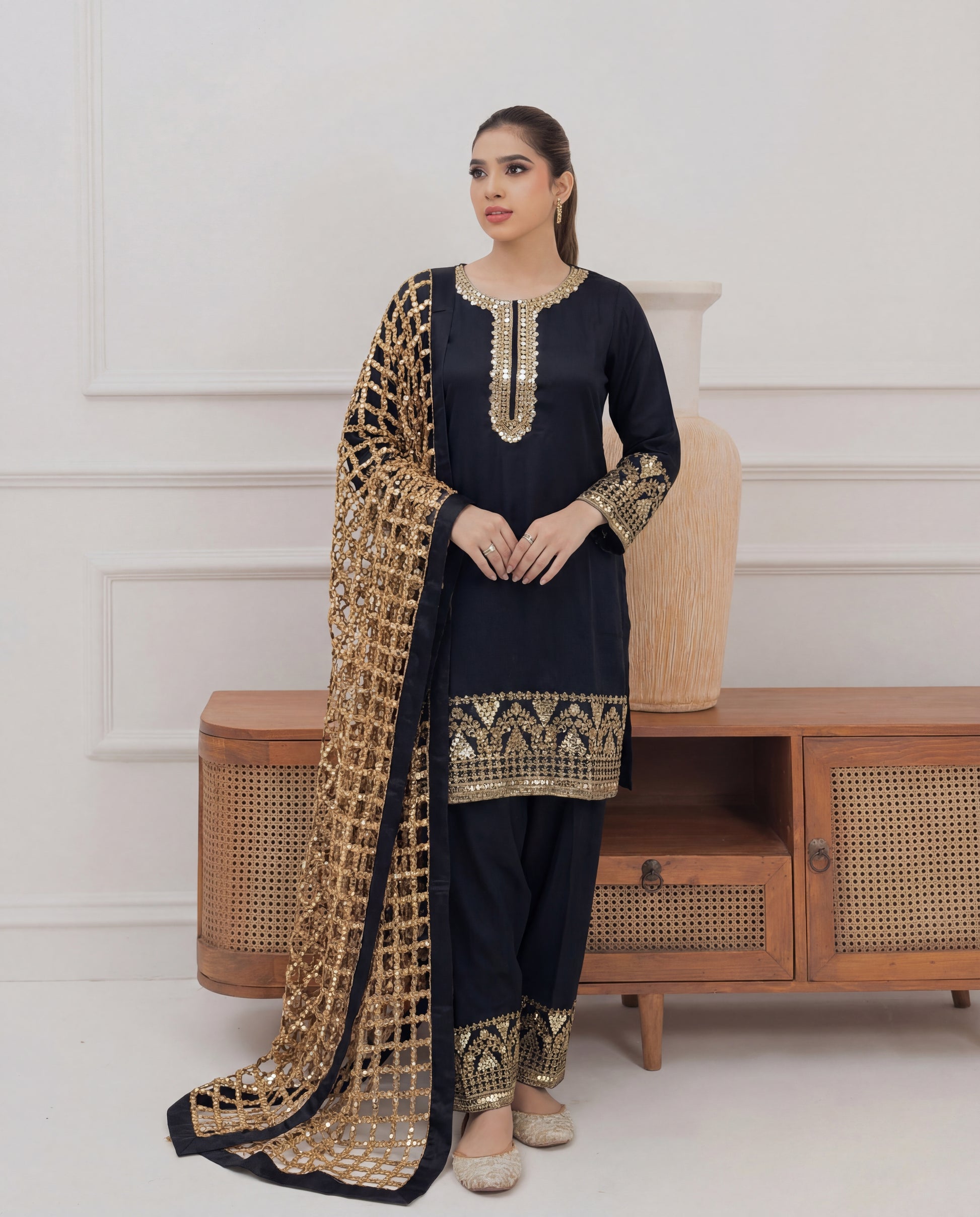 Discover the perfect look. Its shimmer, intricate detailing, and refined craftsmanship make it a beautiful choice for festive wear, events, and evening occasions. Designed for comfort and elegance, it brings a graceful charm to your wardrobe.