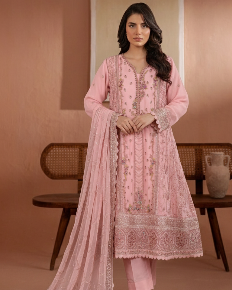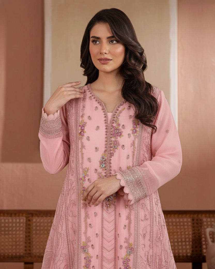 Discover the perfect look. Its soft chiffon flow, clean styling, and graceful drape make it an easy choice for everyday wear, casual gatherings, and dawat events. Designed for comfort and elegance, it adds a polished charm to your wardrobe.
