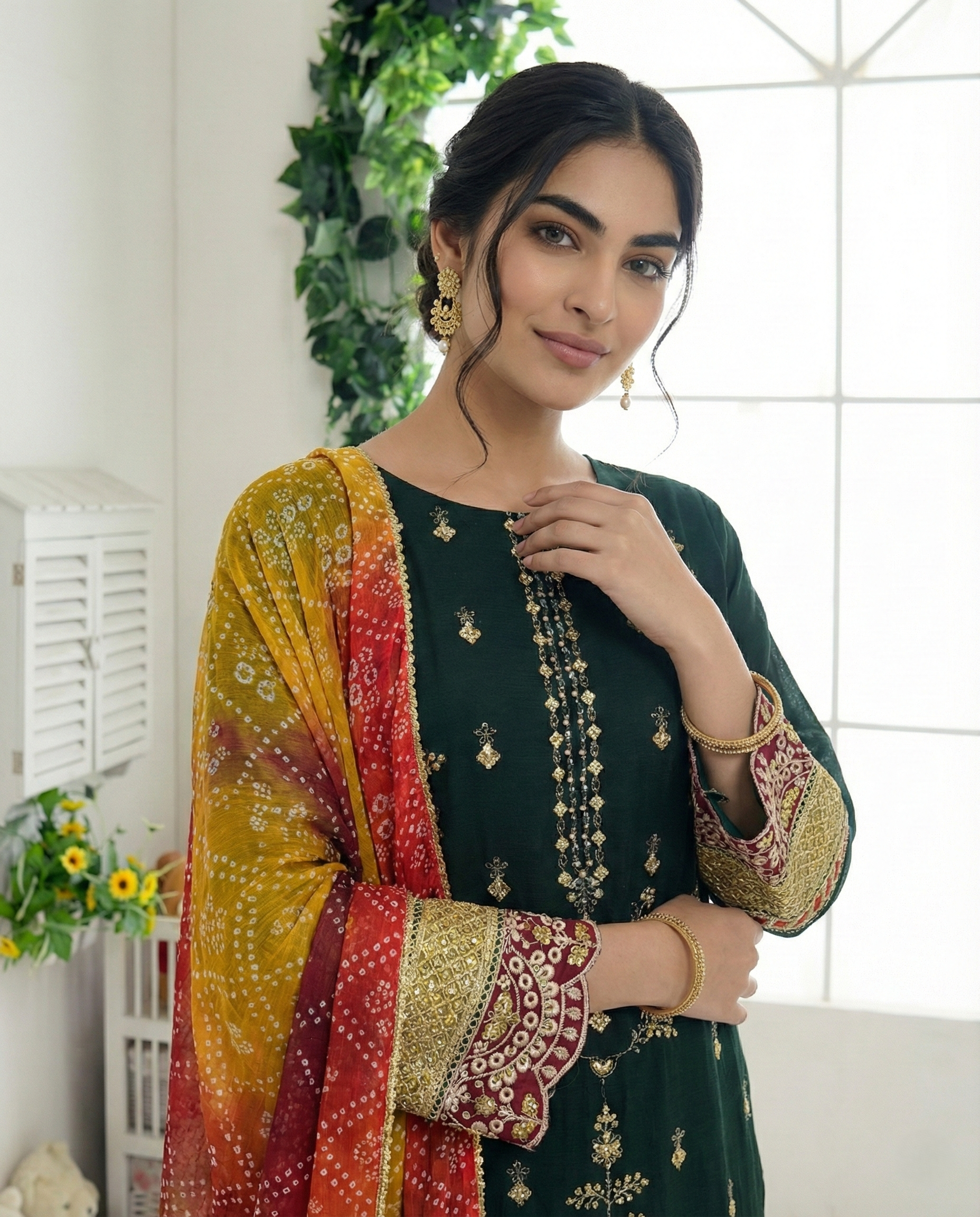 Dupatta: Printed chiffon dupatta adding visual charm and gentle movement.