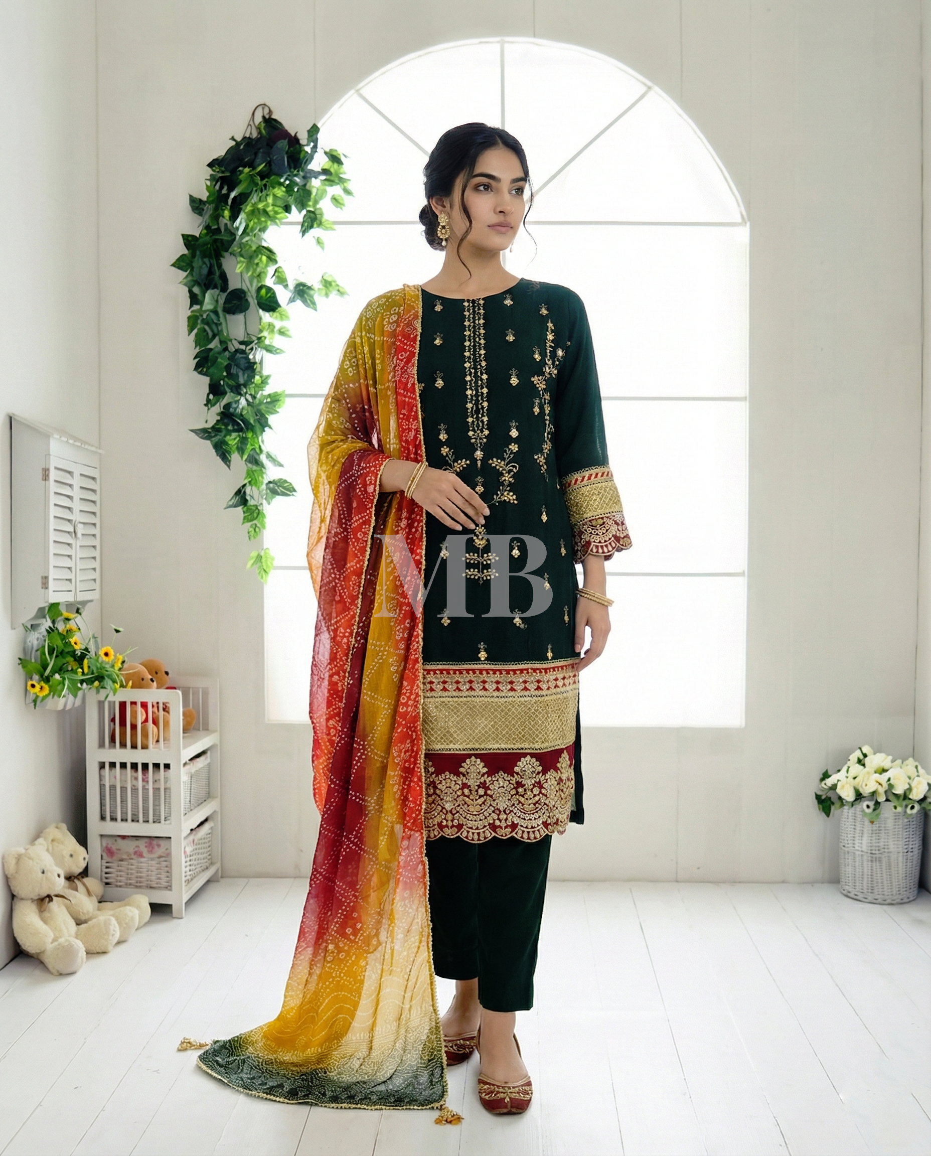 Amazing ready-to-wear quality from Muslim Boutique Fully finished dupatta included; it’s completely ready to wear right away!