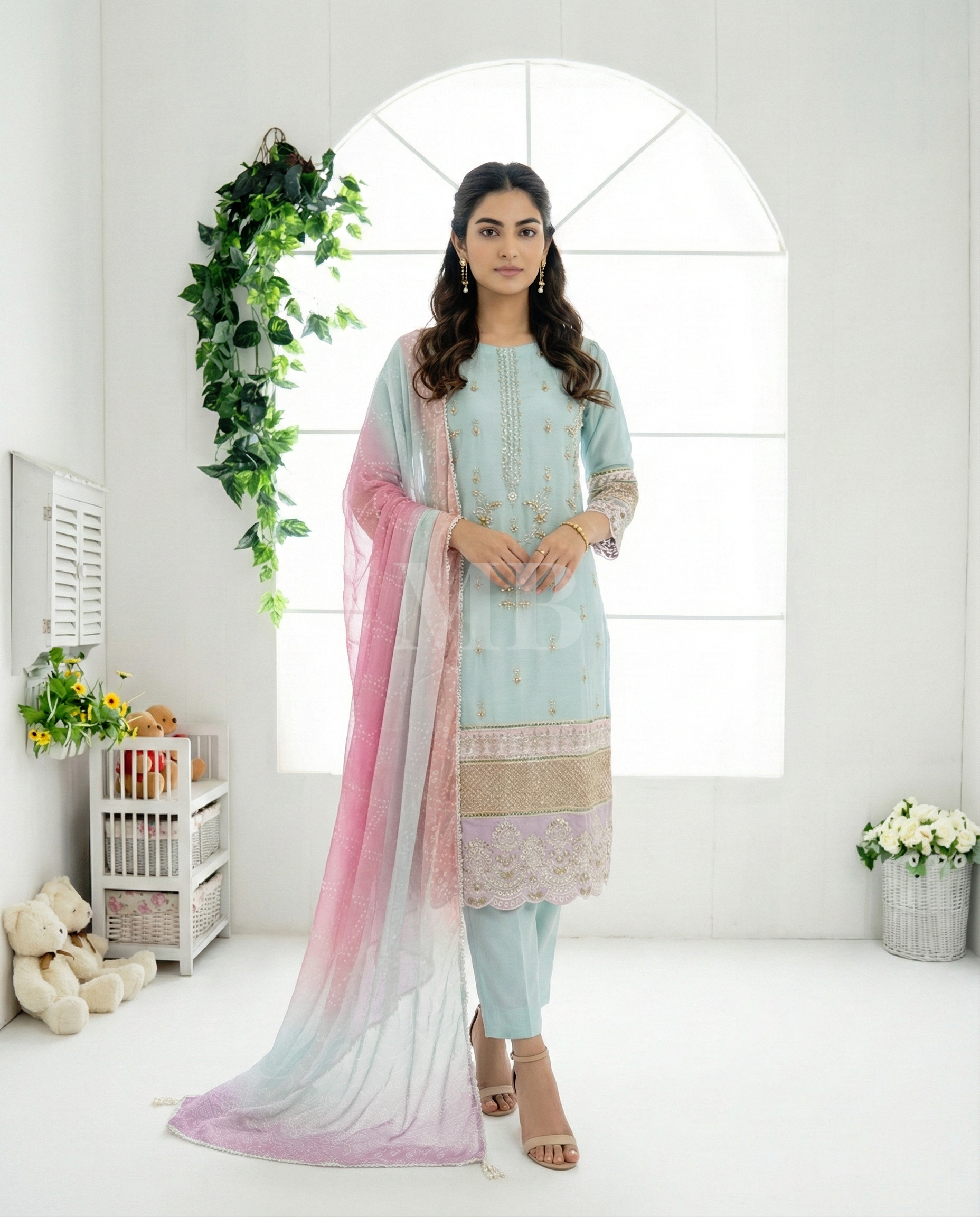 Dupatta: Printed chiffon dupatta adding visual charm and gentle movement.