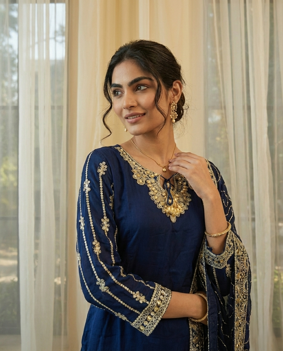 Dupatta: Chiffon dupatta designed for soft movement and refined appeal.