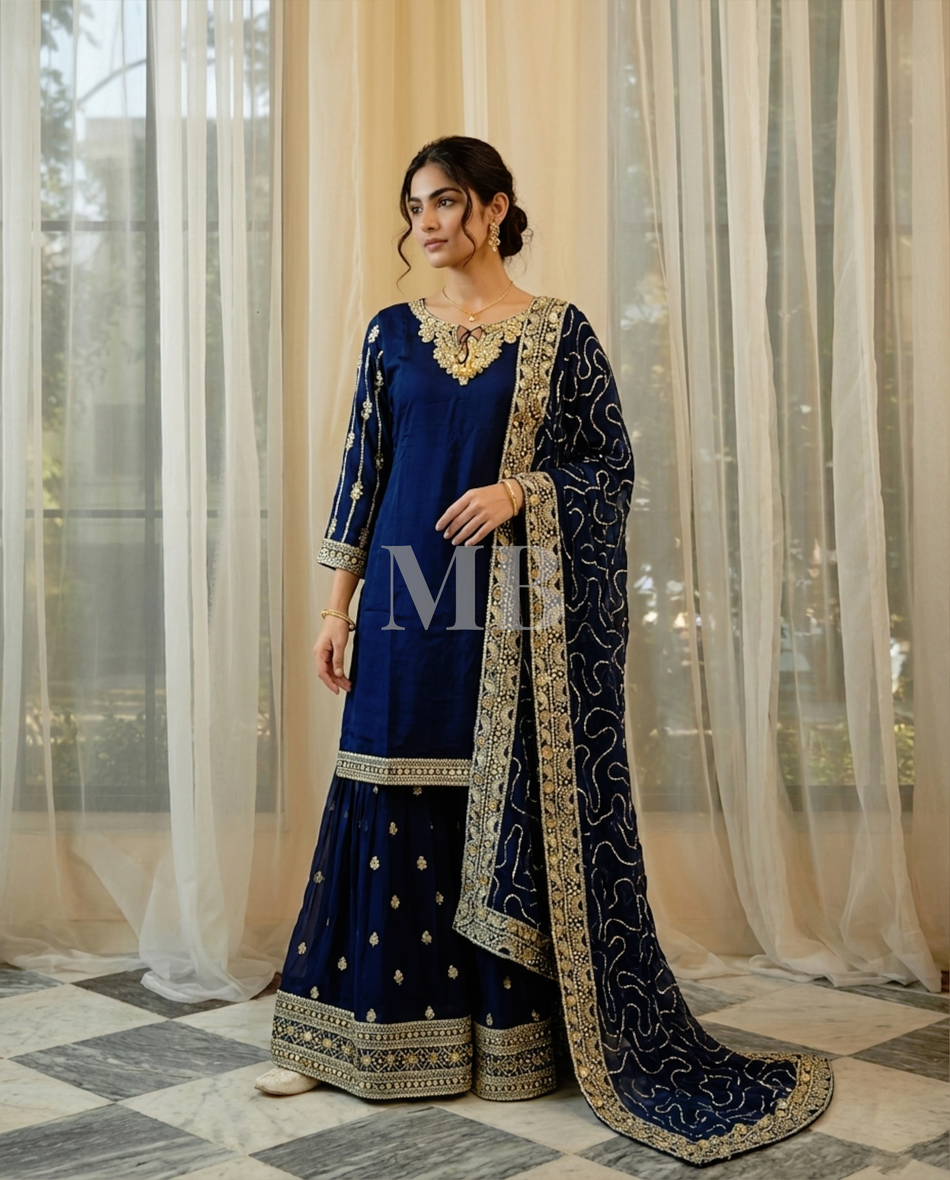Step into graceful elegance with this beautifully coordinated chiffon ensemble. Soft, flowing layers create a look that feels light, refined, and effortlessly luxurious. Designed to move with poise and charm.