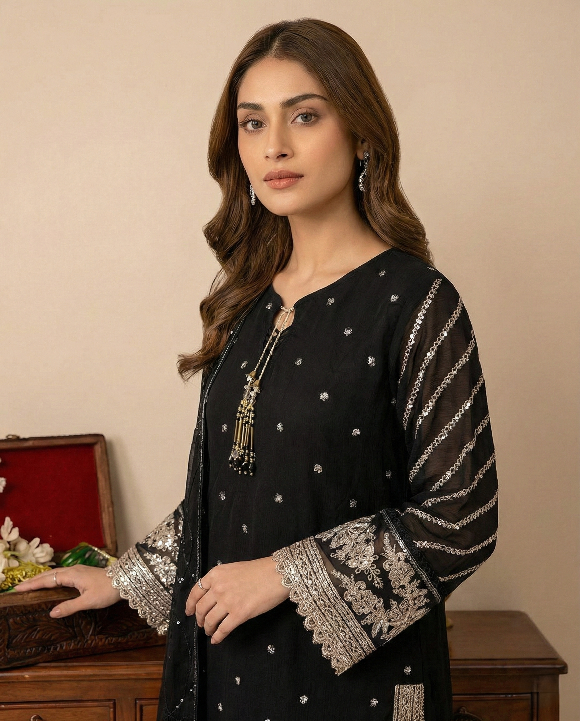 Dupatta: Chiffon dupatta adding soft movement and delicate charm to the overall look.