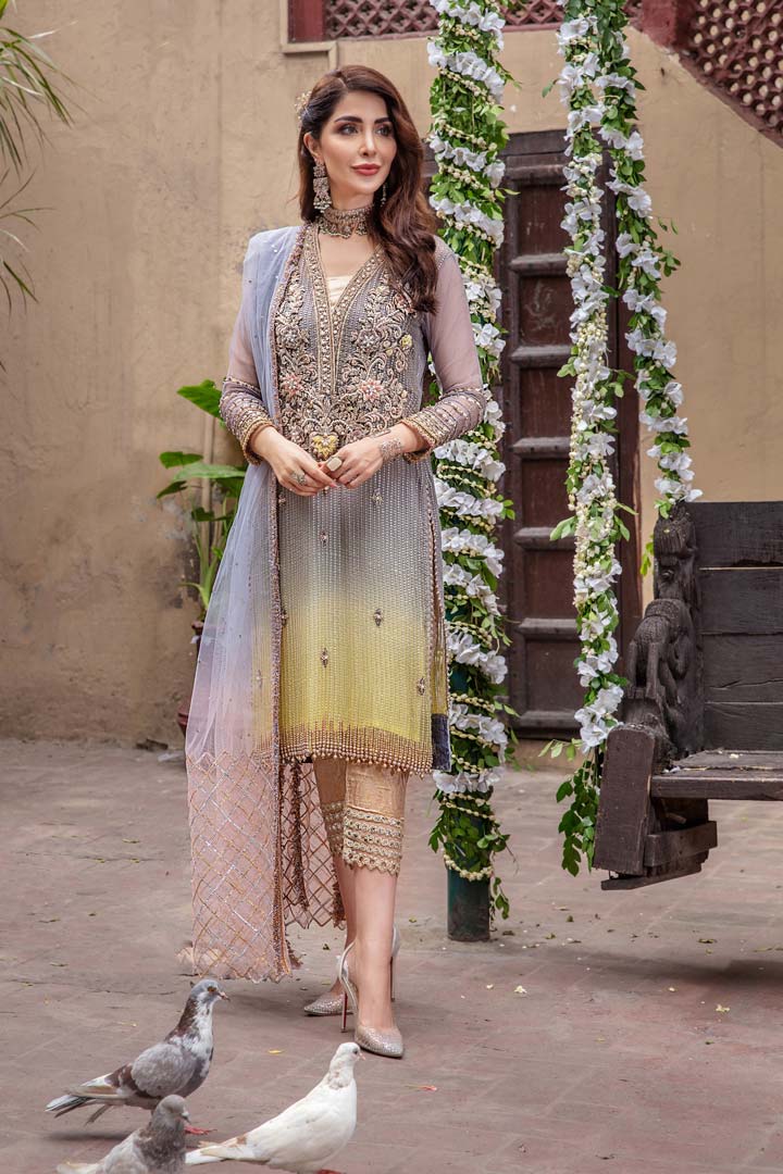 - Shirt: Shabnam Chiffon (Filled with Sequins & Hand Emboroidered with Resham,Gota, Dabka and Embellished with Pearls.