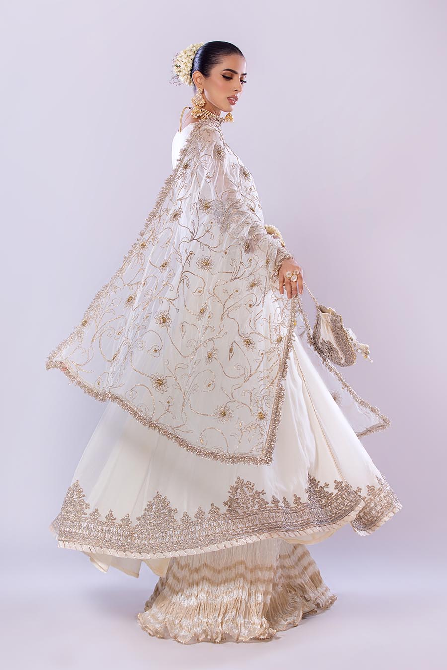 "Introducing our stunning hand-embroidered dress, a masterpiece of elegance and artistry! Adorned with intricate Kora, Dabka, and Gotta work, this Pure Crinkle Chiffon ensemble is a timeless beauty. It's the perfect addition to your Eid wardrobe. Complete with Organza sleeves, a Net Dupatta with stunning Gotta work, and a luxurious Indian Crushed Sharara, it's a statement piece you'll adore. Elevate your Eid look with #KhudaBakshbyRashidSidhu today! #HandEmbroidery #Elegance #EidRang #EidCollection #FashionStatement"