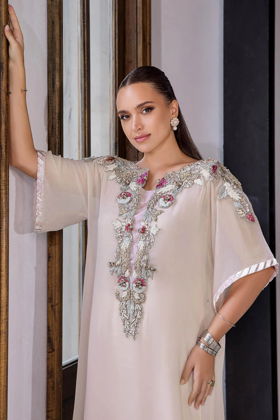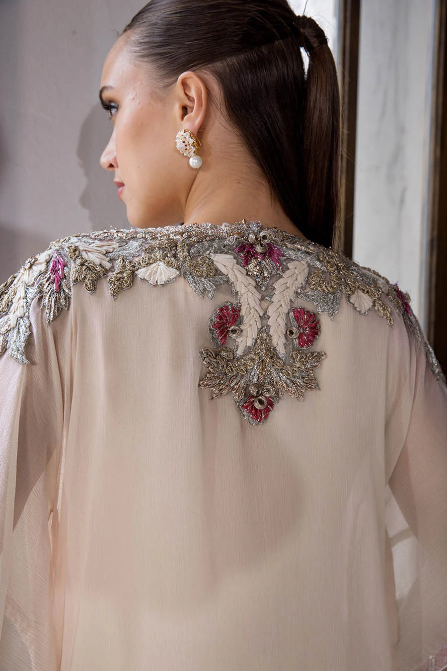 - Shirt: Crinkle Chiffon | Hand Embroidered (Kora, Dabka, Gotta, 3d Work)