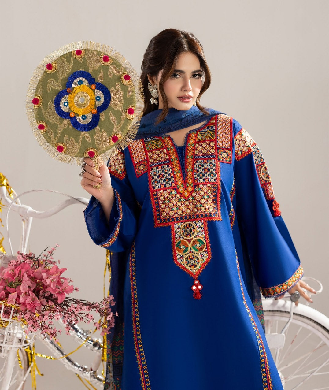 A vibrant celebration of color and craftsmanship, thoughtfully designed for graceful summer styling. This ensemble blends breathable cotton with handcrafted details, creating a look that feels artistic, elegant, and effortlessly refined.