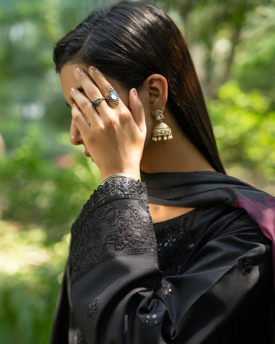 This outfit is a black linen ensemble that defines quiet luxury with effortless grace. Subtle tonal embroidery adds depth and texture, catching the light with understated elegance. The refined detailing gives it a timeless appeal, perfect for formal and semi-formal occasions. Crafted from premium linen, it offers both comfort and sophistication for every event.