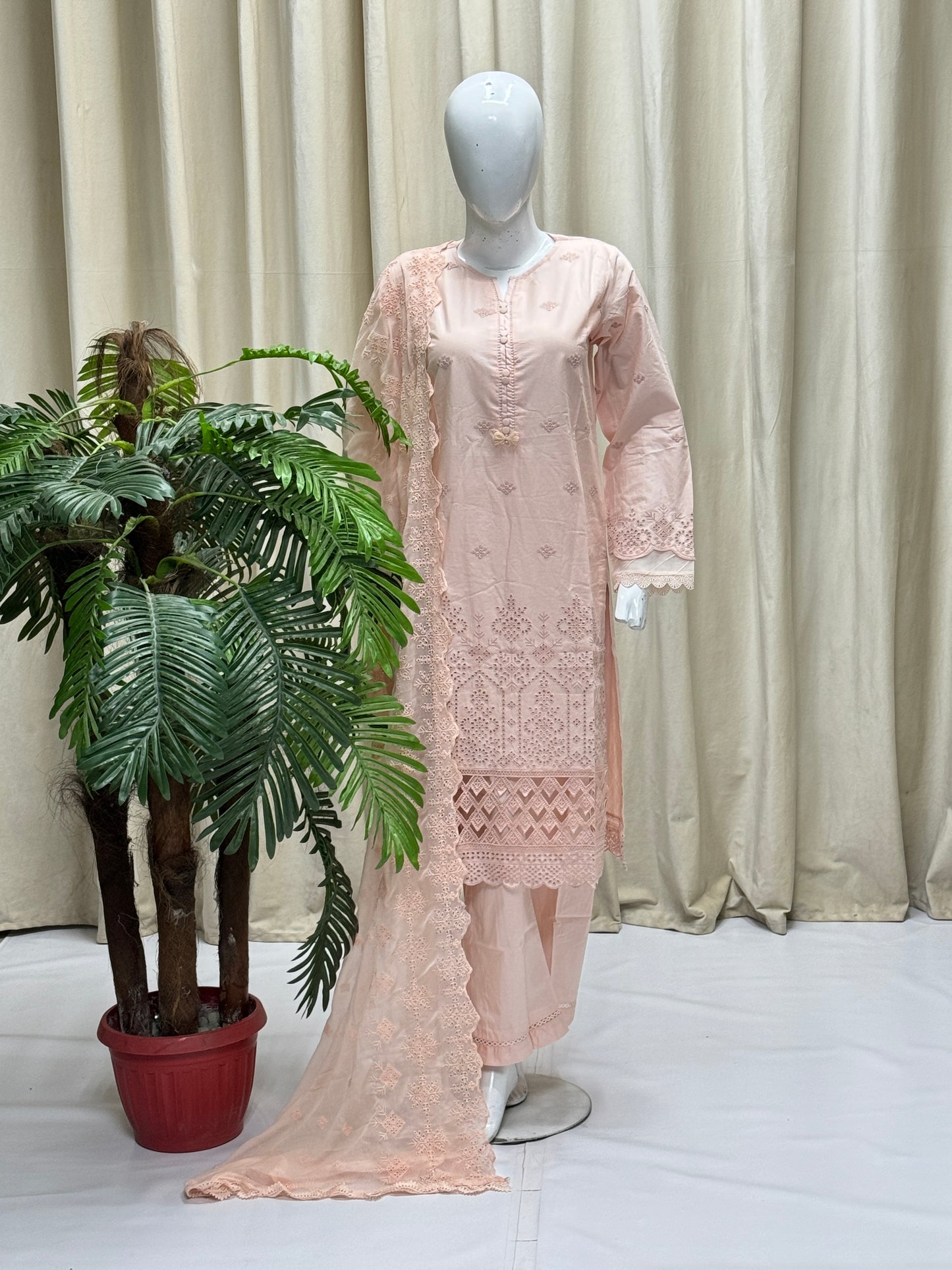 Introducing the SADABAHAR our exclusive collection. Made with high-quality cotton and chiffon, it features intricate embroidery on the shirt and dupatta for a touch of elegance. The cotton trouser adds comfort and versatility to this stylish ensemble.