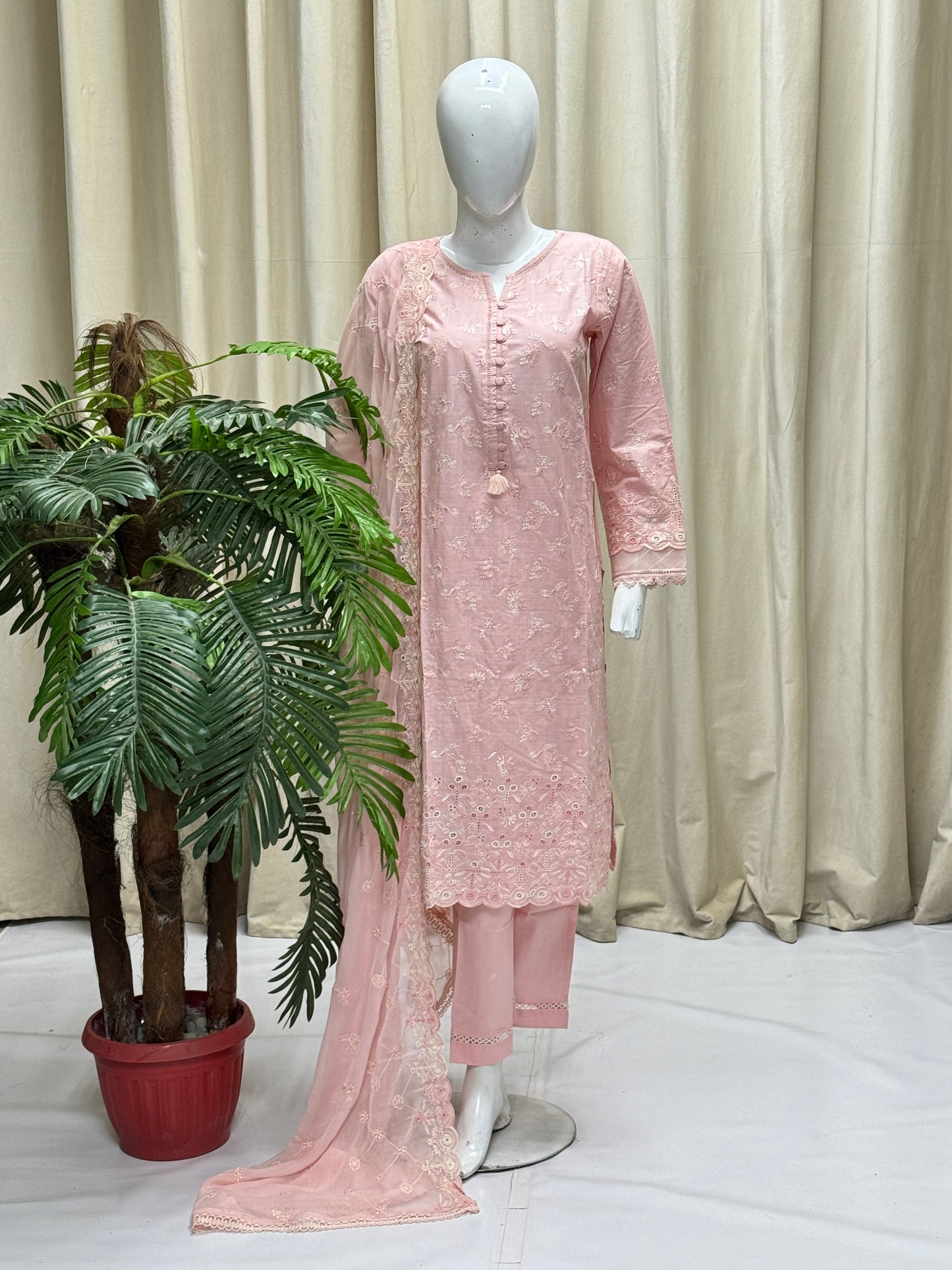Introducing the SADABAHAR our exclusive collection. Made with high-quality cotton and chiffon, it features intricate embroidery on the shirt and dupatta for a touch of elegance. The cotton trouser adds comfort and versatility to this stylish ensemble.