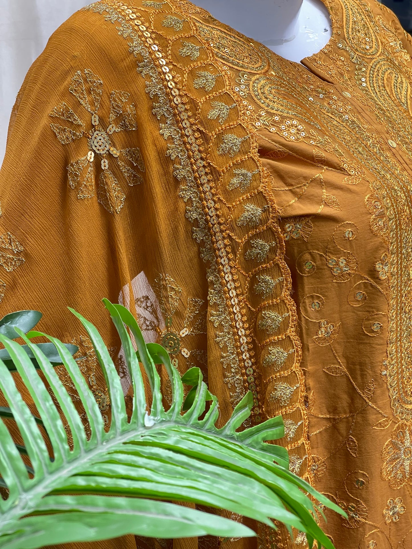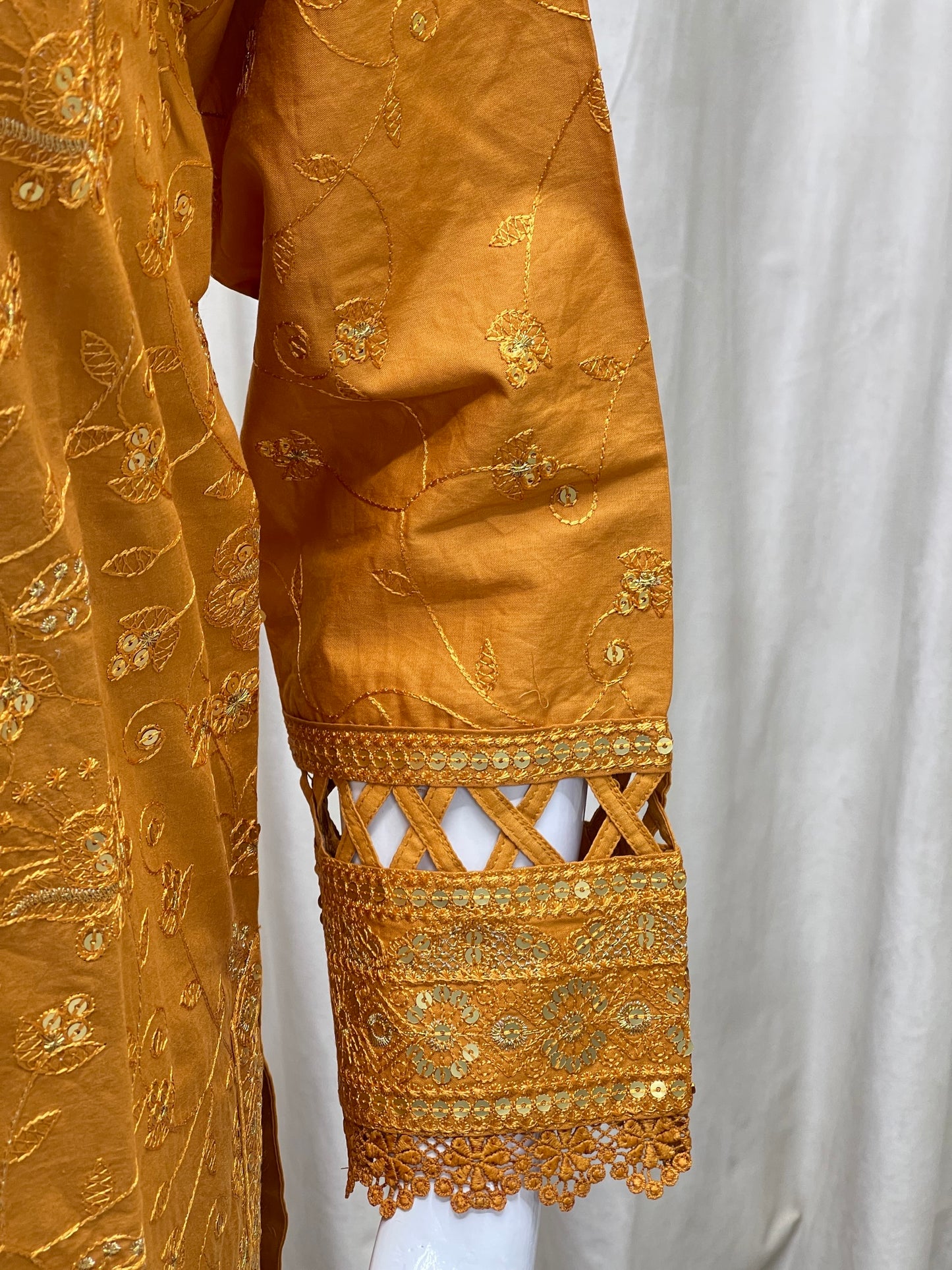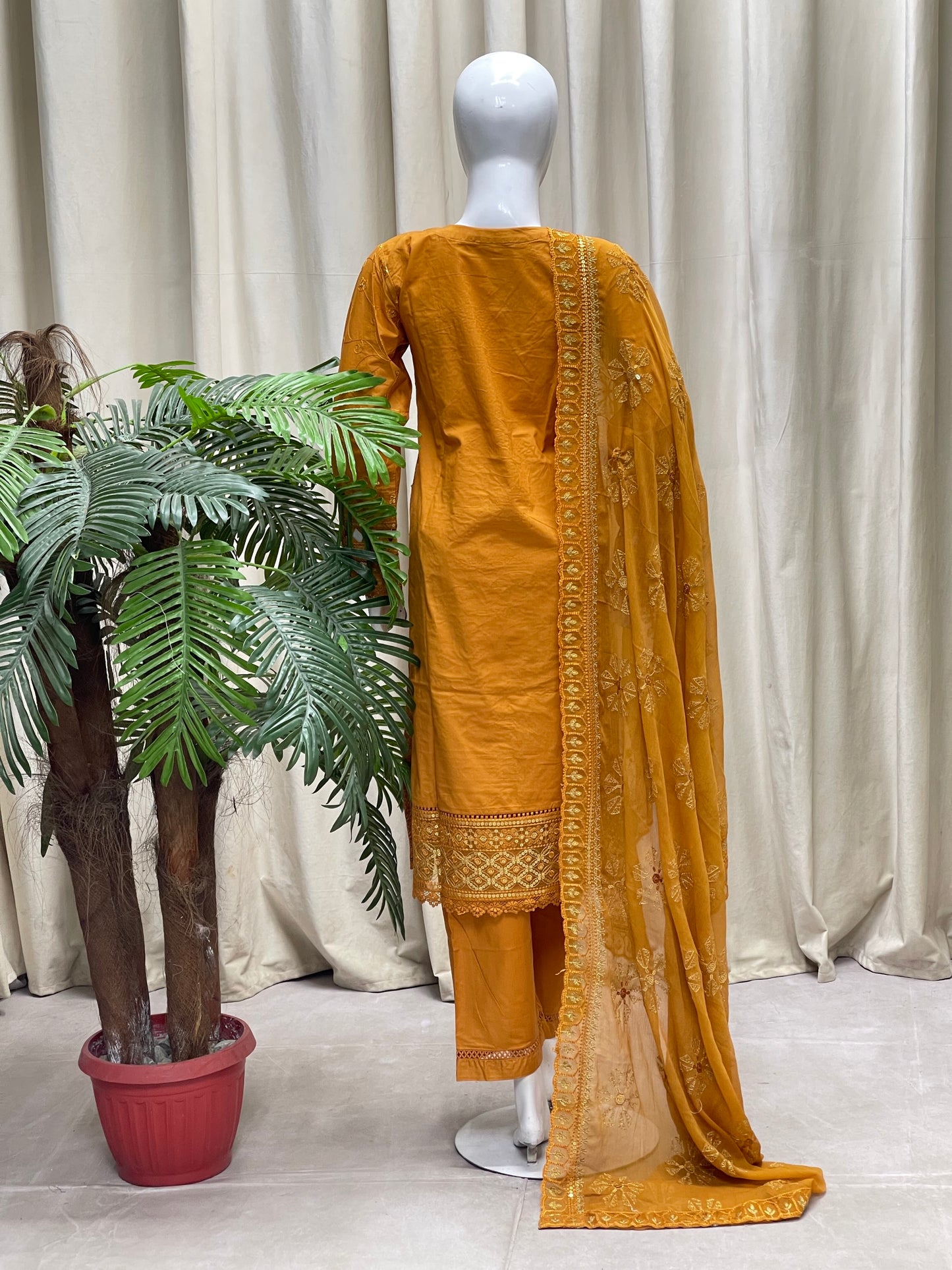 This SADABAHAR 66 Rust outfit includes a cotton shirt, chiffon dupatta, and cotton trousers. With its 3-piece ready to wear design, it's perfect for everyday wear and provides breathable comfort all day long. Add a touch of elegance and style to your wardrobe with this versatile and trendy set.
