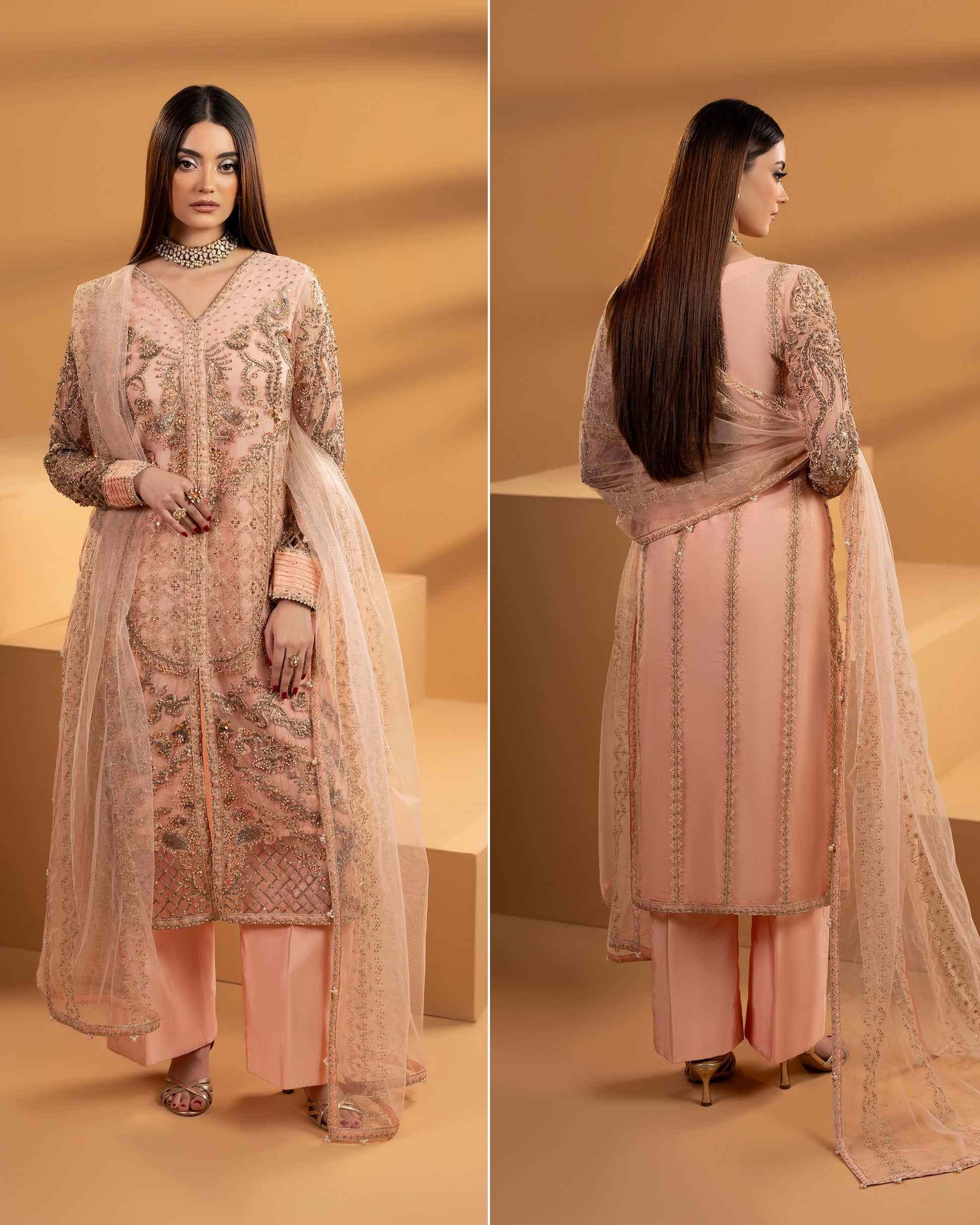 Dupatta: Net dupatta adding elegance and continuity to the overall design.