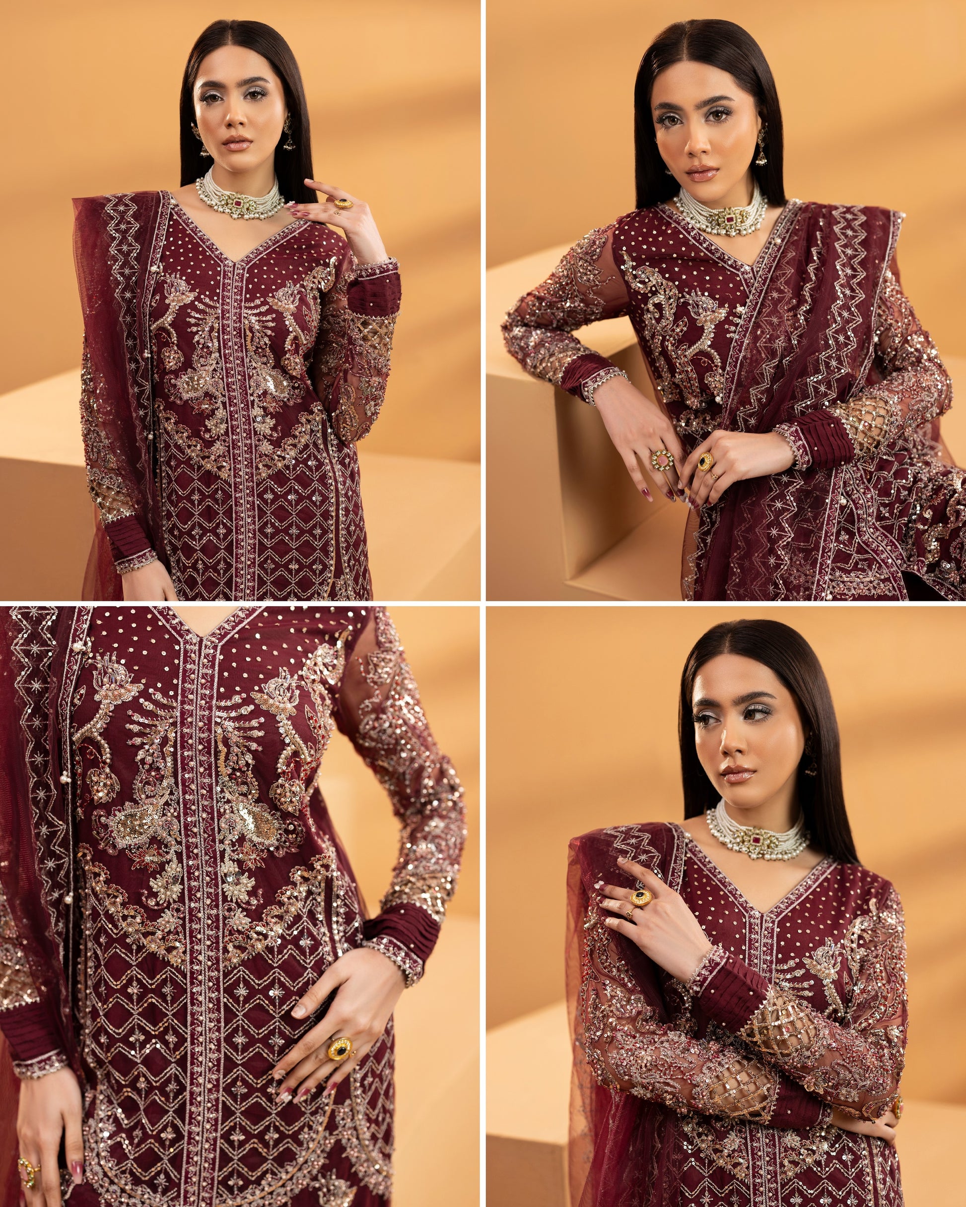 Dupatta: Net dupatta adding a light, elegant touch to complete the formal look.