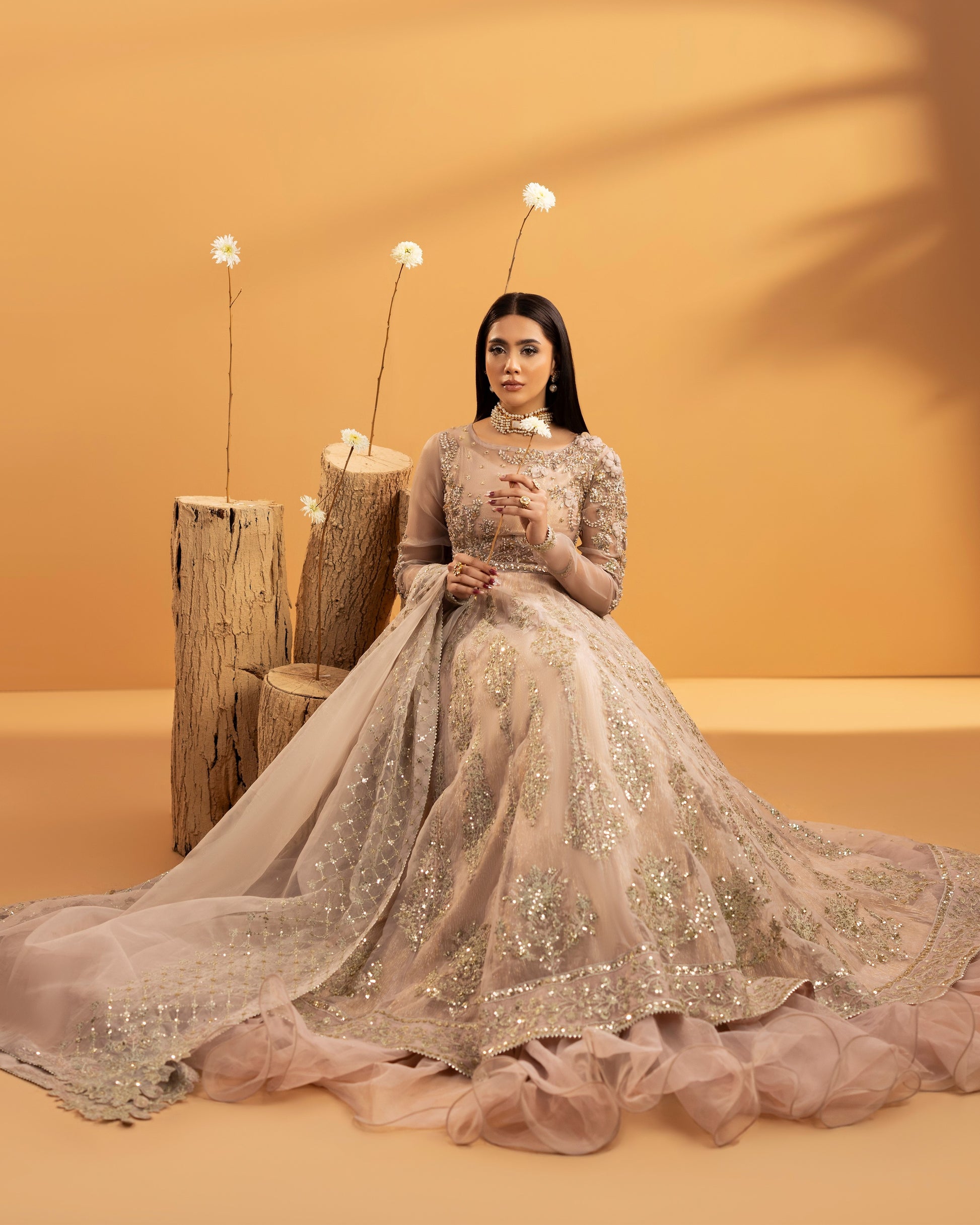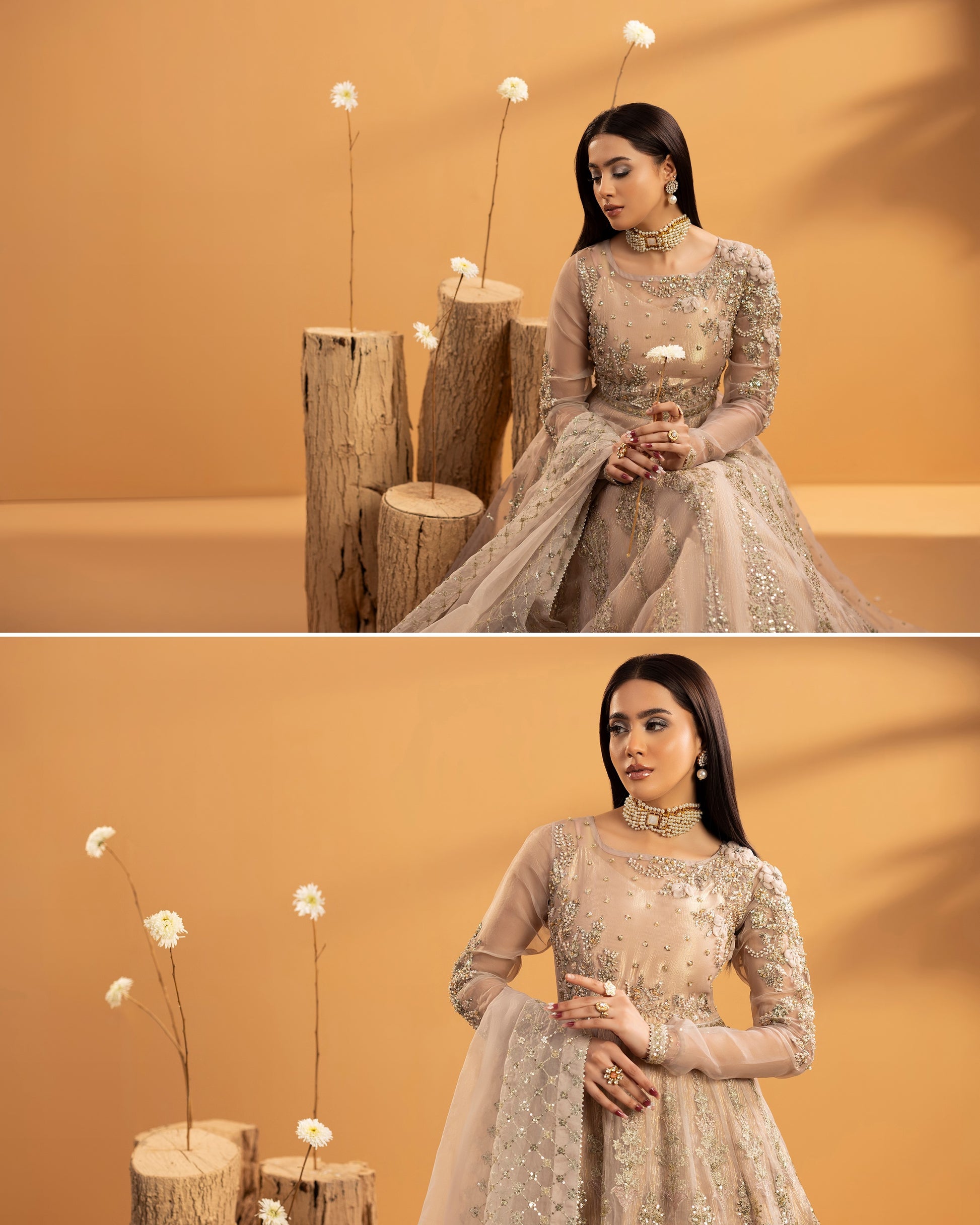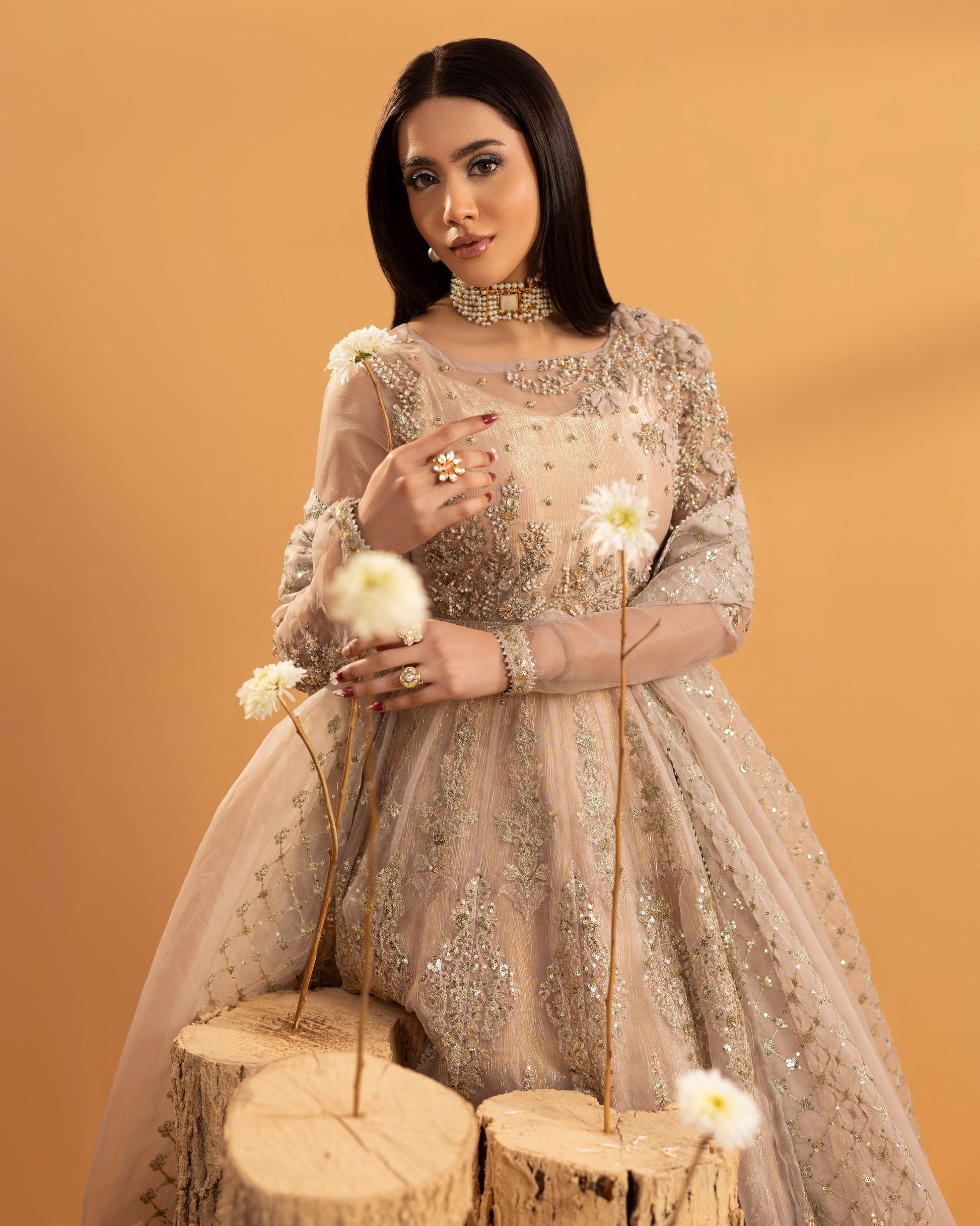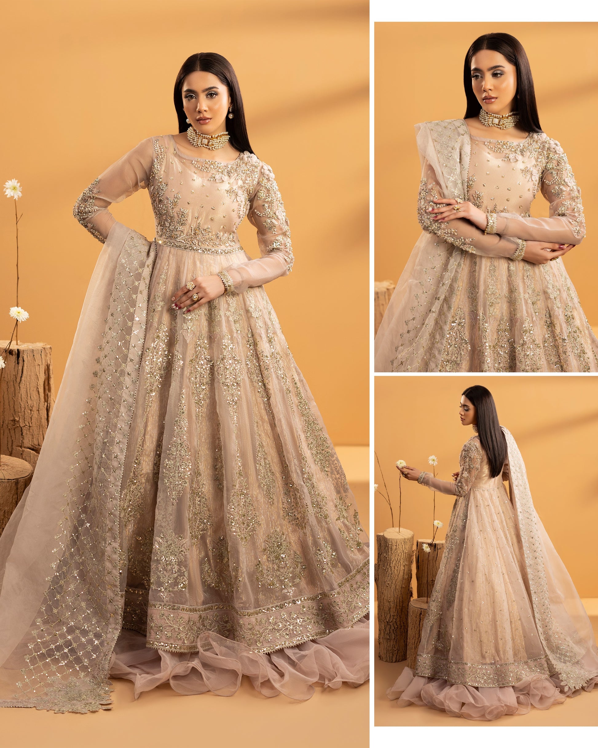 Discover the perfect look. Its graceful floor-length design and sheer organza texture make it a timeless choice for wedding and formal guest wear. Designed for elegance and comfort, this outfit creates a refined silhouette that feels effortlessly luxurious. Upgrade your formal wardrobe with this classic ensemble.