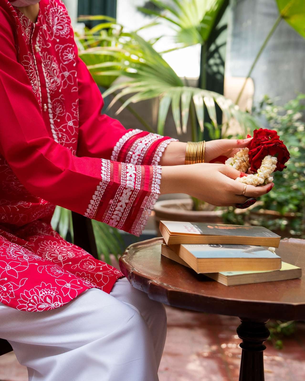 Get ready for Eid with our Sirf Tumhari Summer Drop! Fresh, floral, and feminine — this pink and white 3 piece outfit is made for serene, elegant daytime events. With breezy fabric and delicate embroidery, it reflects beauty in every quiet moment and elevates your festive style effortlessly.