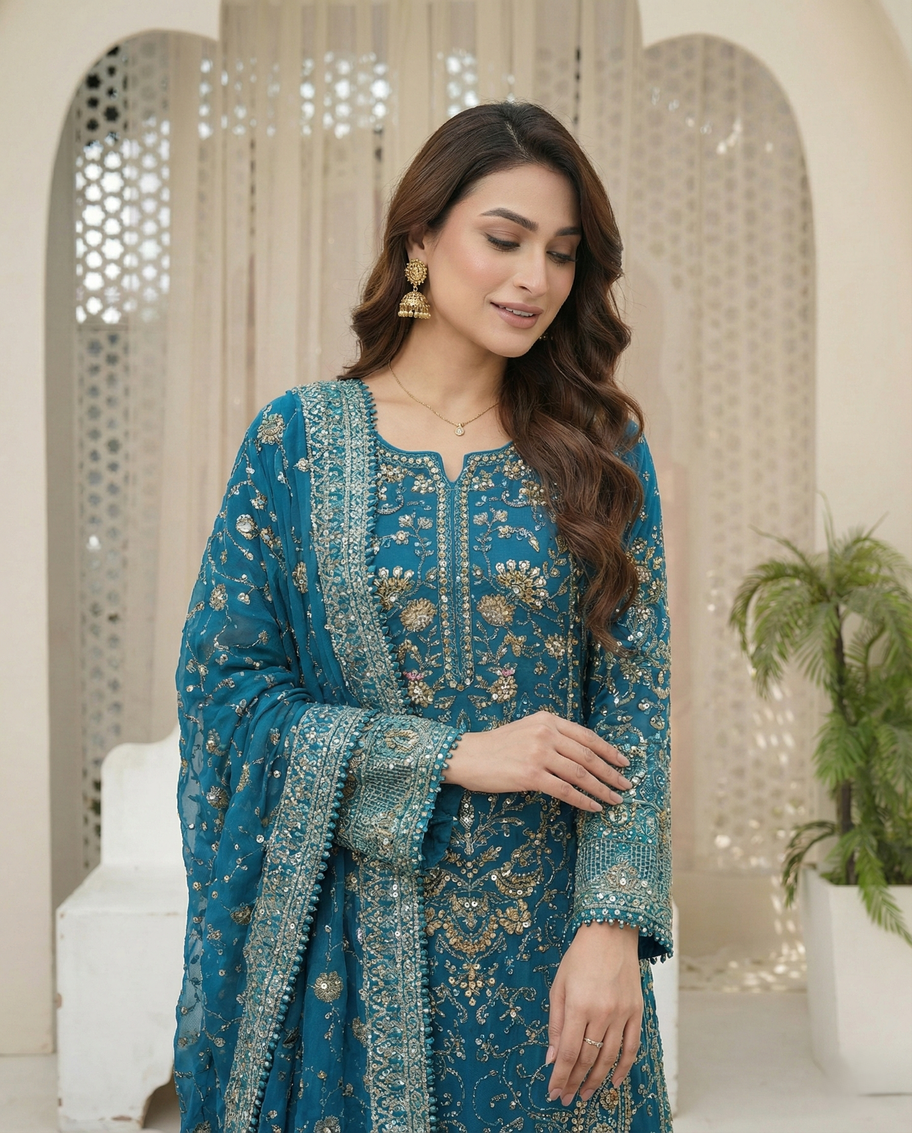 Amazing ready-to-wear quality from Muslim Boutique Fully finished dupatta included; it’s completely ready to wear right away!