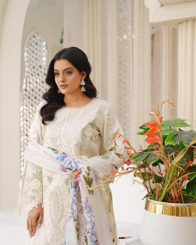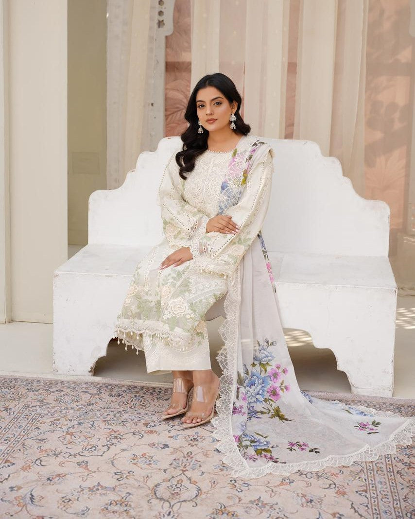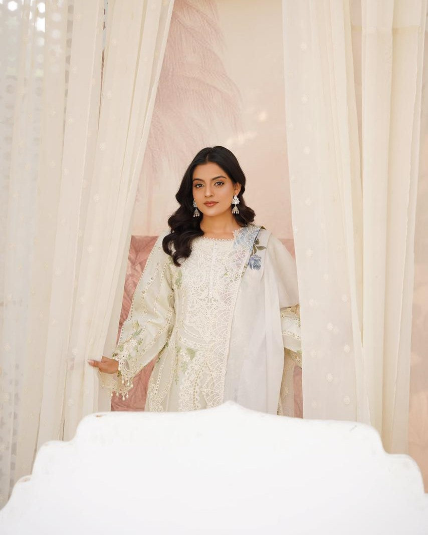 A soft and graceful ensemble with a refined touch. The organza shirt brings a delicate charm, while the silk dupatta adds a luxurious flow — perfect for dawat and semi-formal wear.