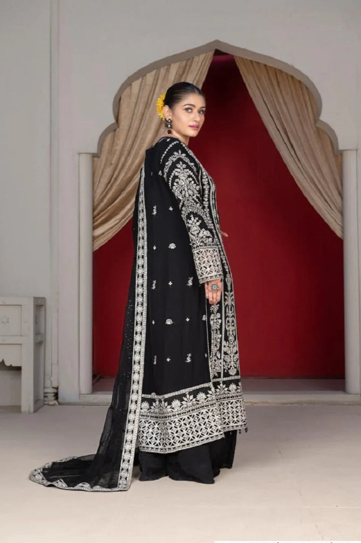 A timeless chiffon shirt paired with a smooth grip trouser creates a graceful silhouette. The matching chiffon dupatta adds a soft and refined touch, making this 3PC ensemble perfect for chic gatherings and elegant evenings.