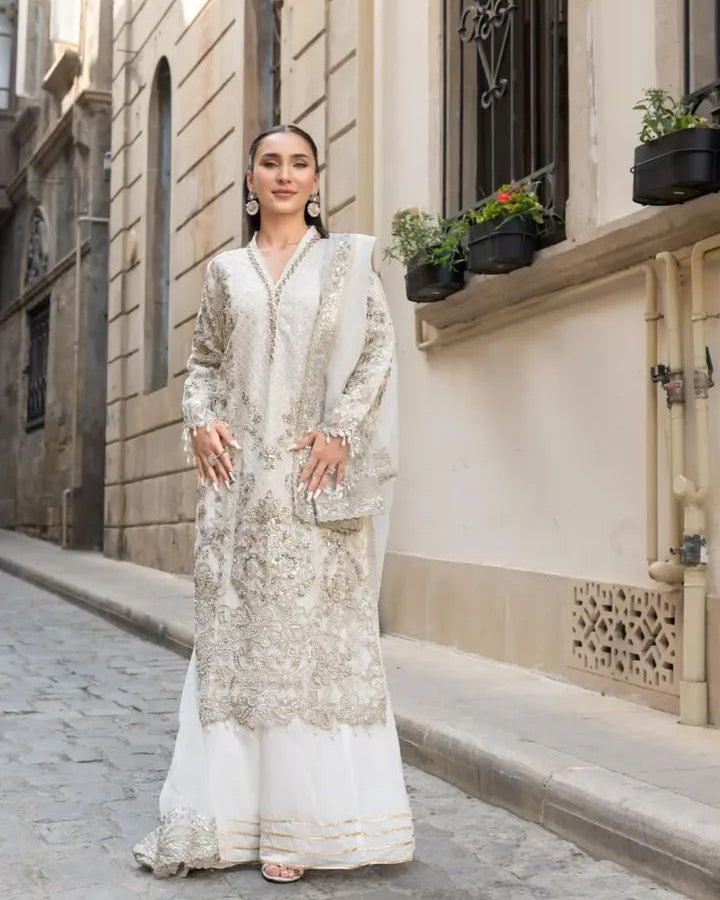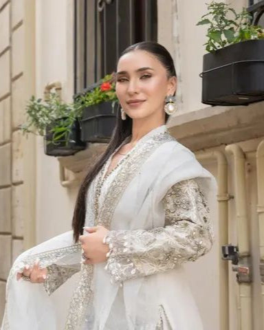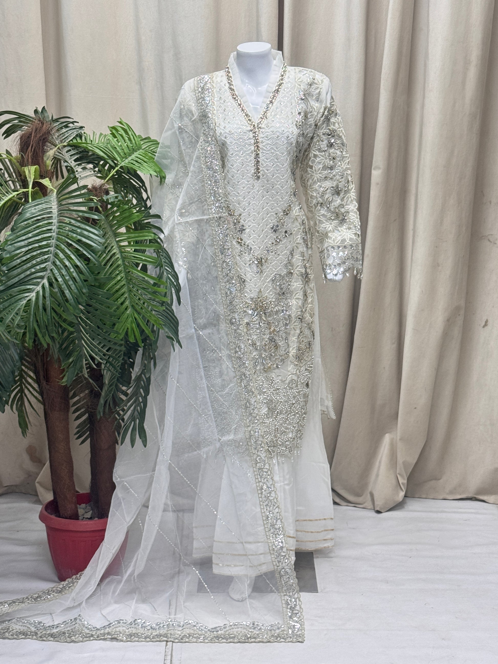 An elegant organza straight shirt paired with a breezy plazo makes this look perfect for chic gatherings. The matching organza dupatta adds a touch of grace, while the viscose plazo ensures comfort without compromising style.