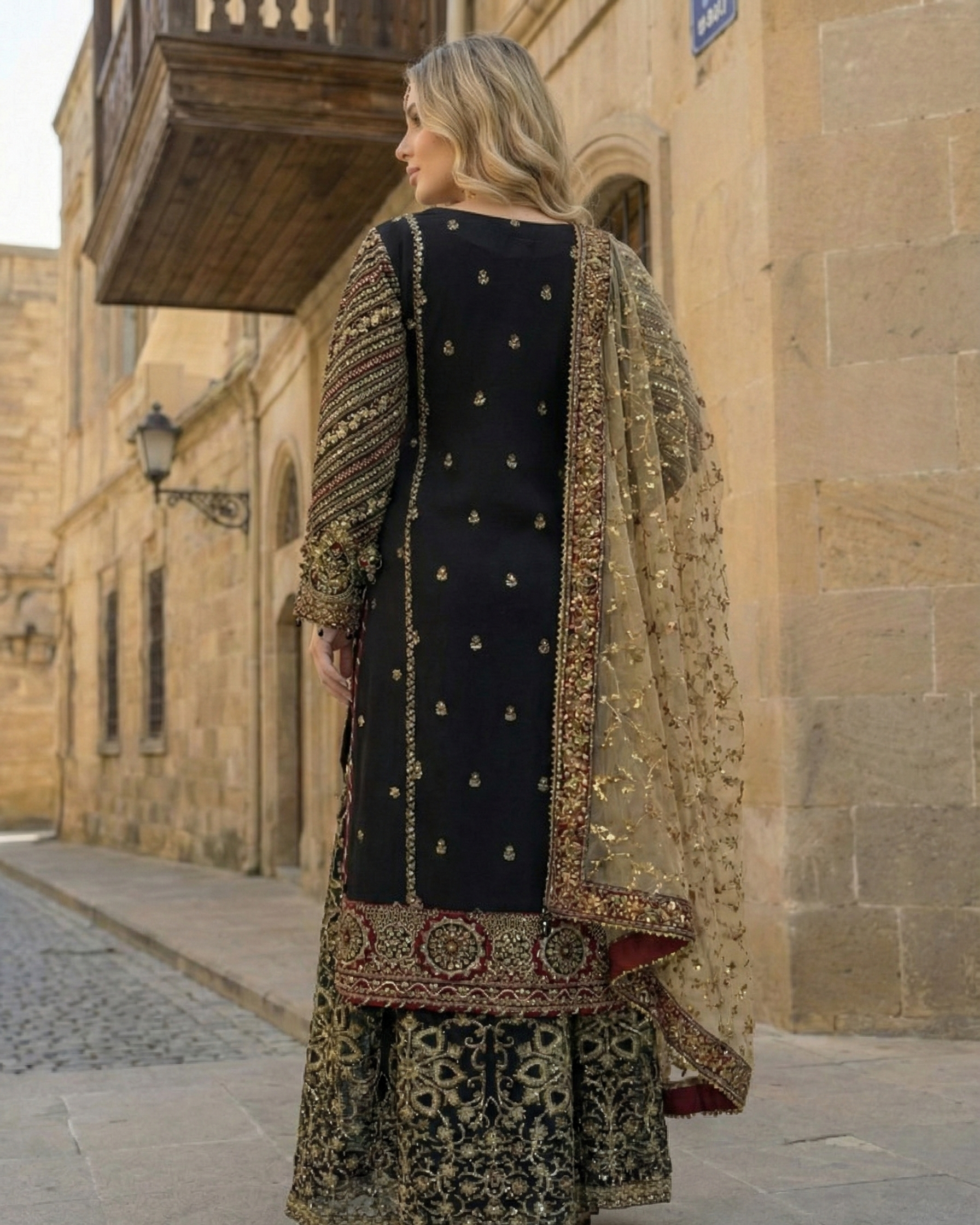 Discover the perfect look. Its airy chiffon textures, delicate hand embellishments, and graceful flow create an elegant festive silhouette, ideal for dawat wear and special occasions. Designed for comfort and refined style, it adds timeless charm to your wardrobe.