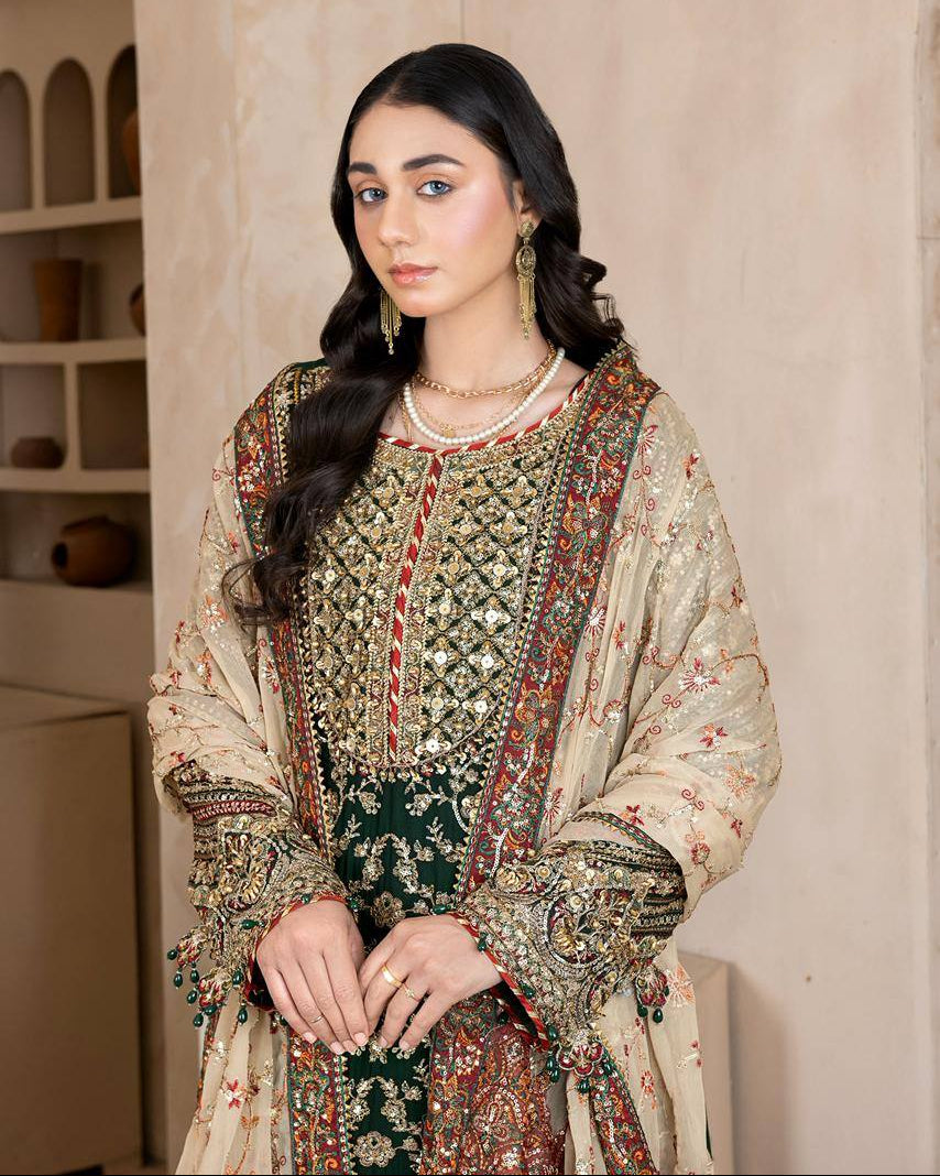 Discover the perfect look. Its airy chiffon textures, delicate hand embellishments, and graceful flow create an elegant festive silhouette, ideal for dawat wear and special occasions. Designed for comfort and refined style, it adds timeless charm to your wardrobe.