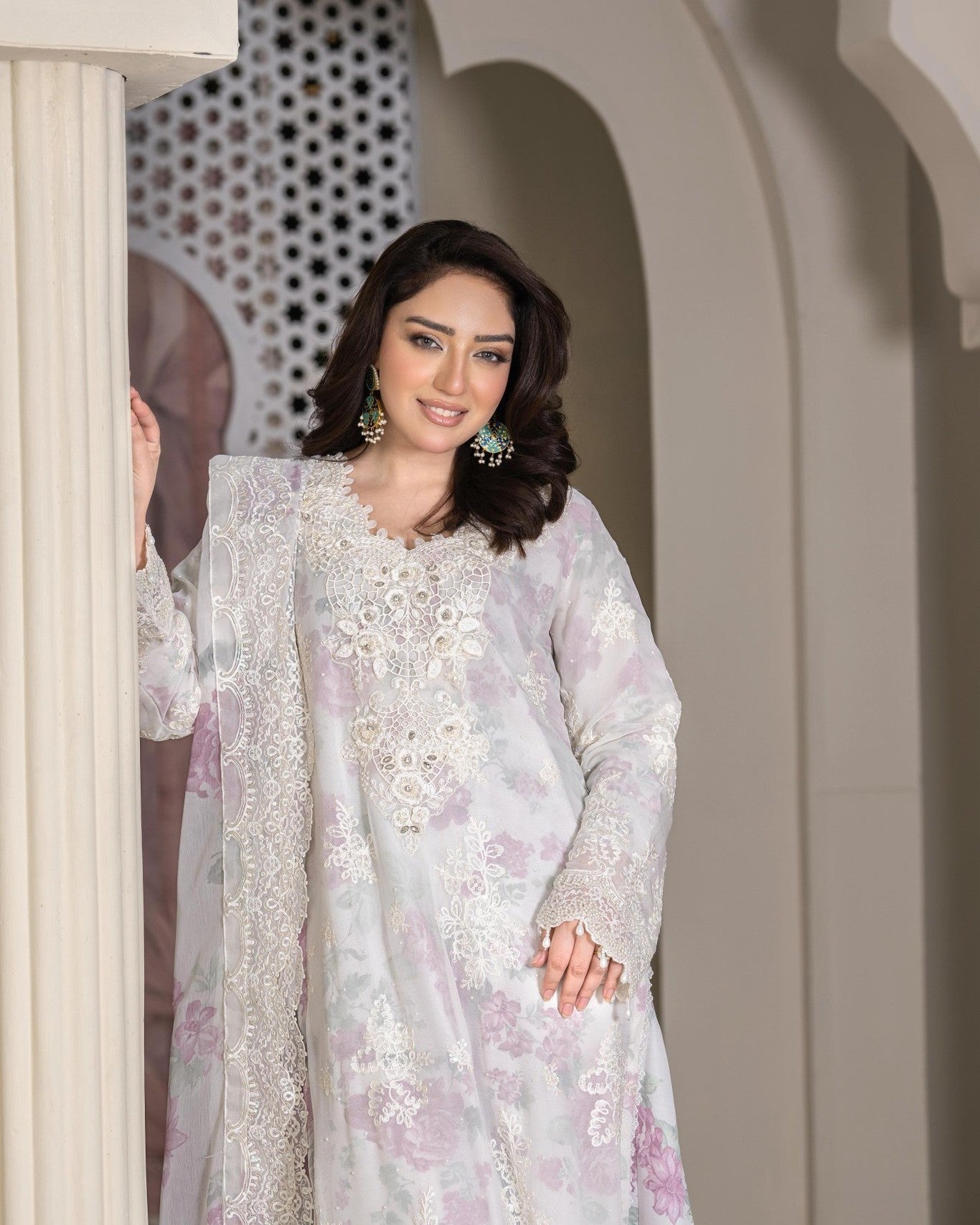 Dupatta: Matching chiffon dupatta completing the elegant ensemble