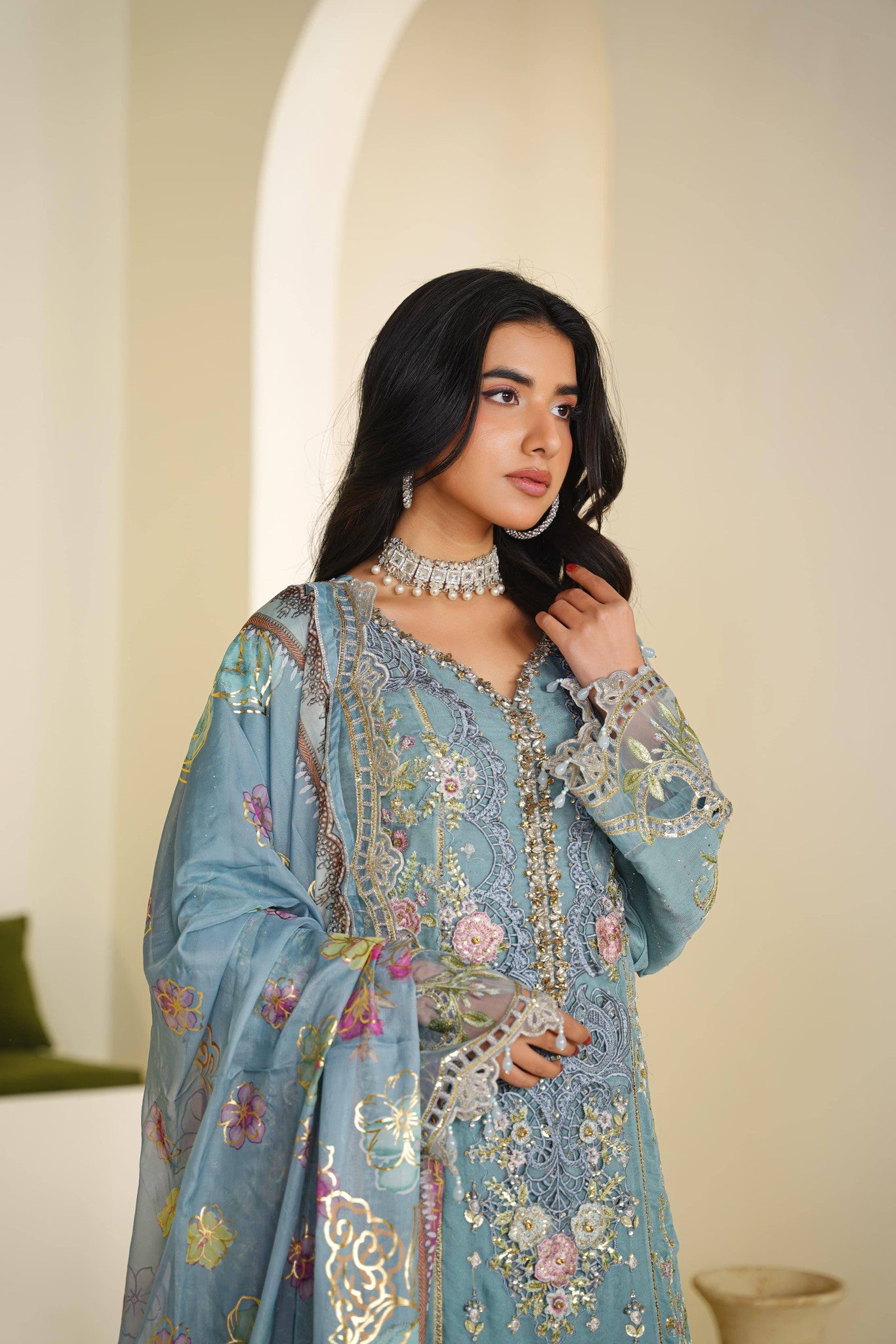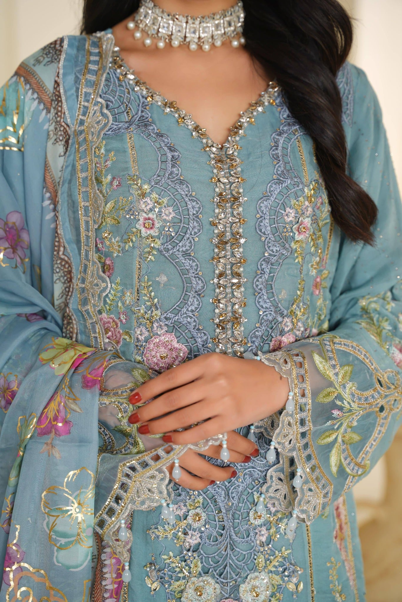 Dupatta: Chiffon printed and embroidered dupatta, bringing charm and color with elegant finishing.